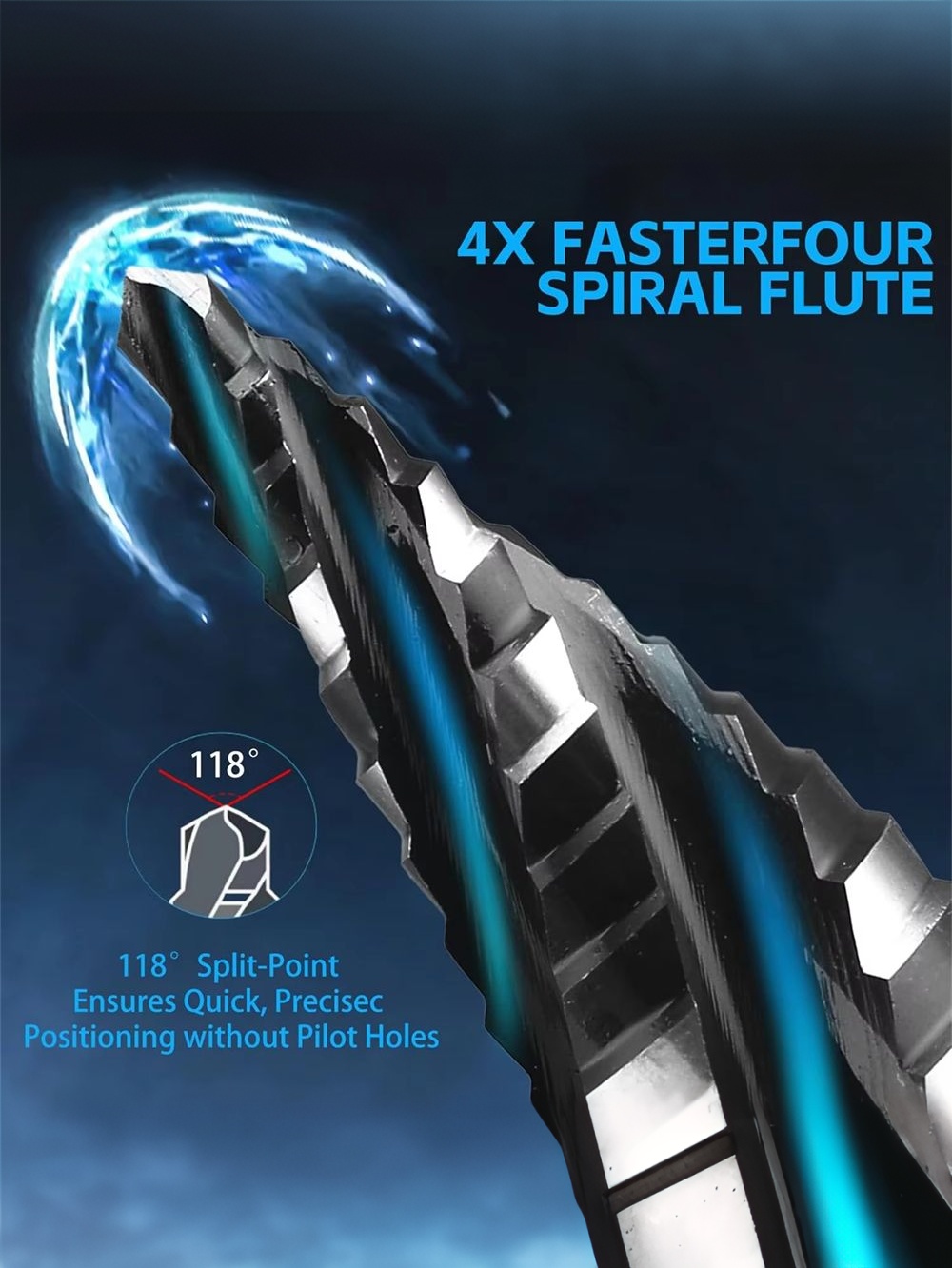 2. Precision Split-Point Tip: The 118° split-point design allows precise positioning for efficient drilling without needing pilot holes, helping achieve accuracy with ease.