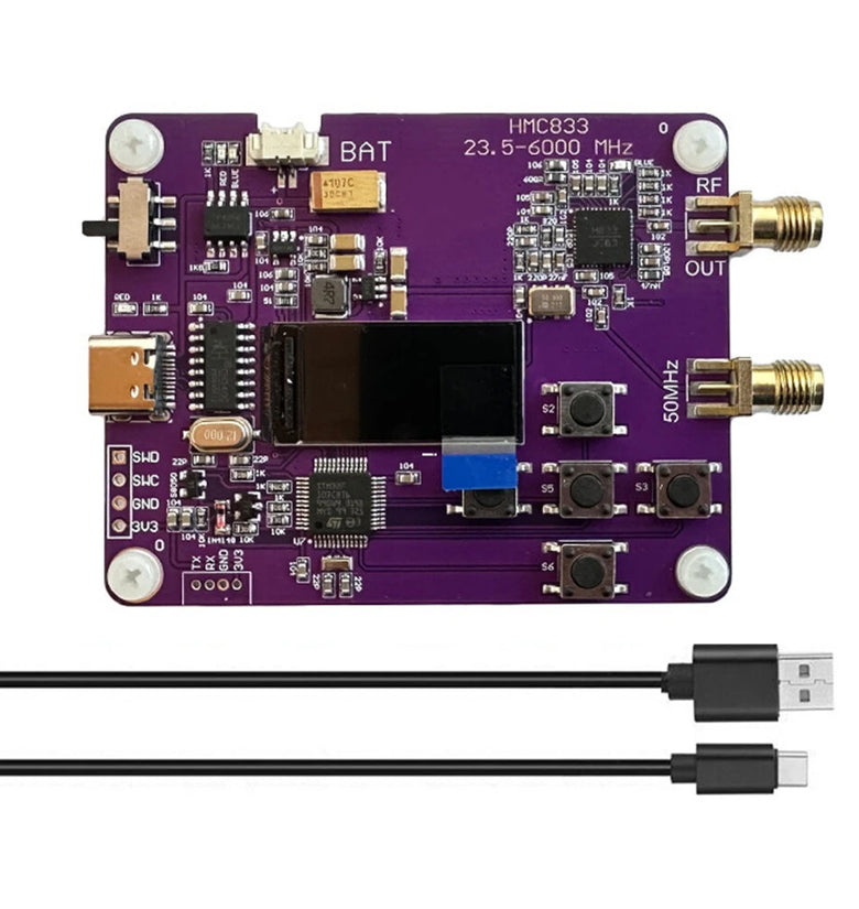 HMC833 6GHz RF Signal Generator 23.5MHz-6000MHz OLED Screen Adjustable Power Module Board