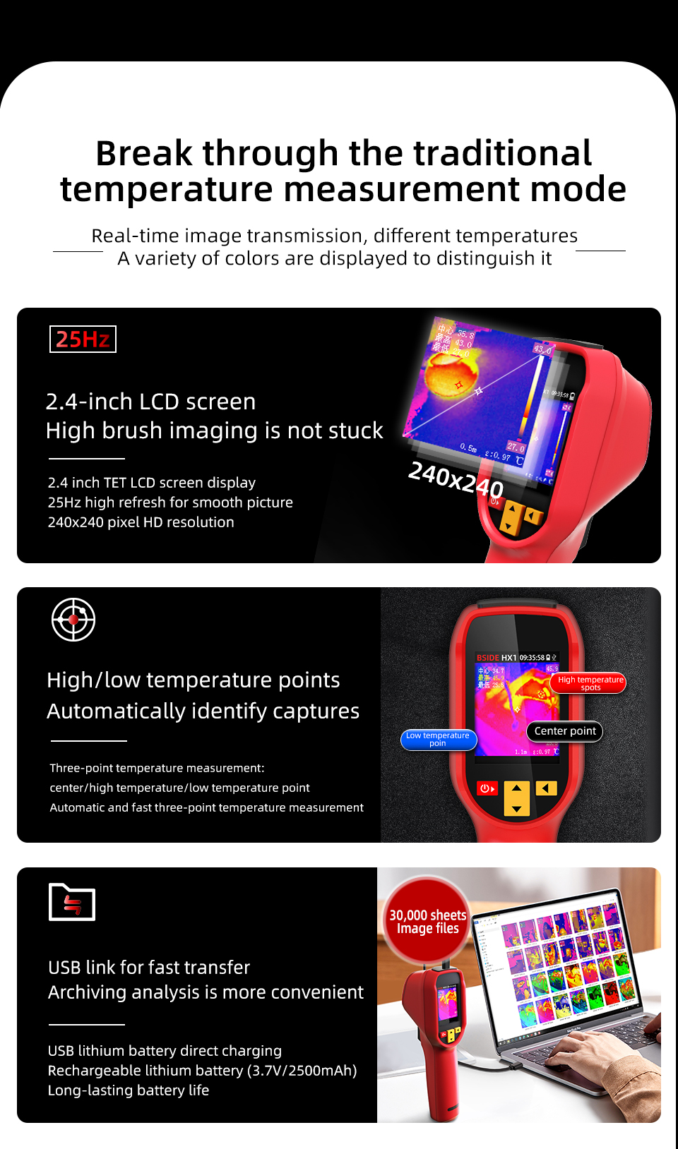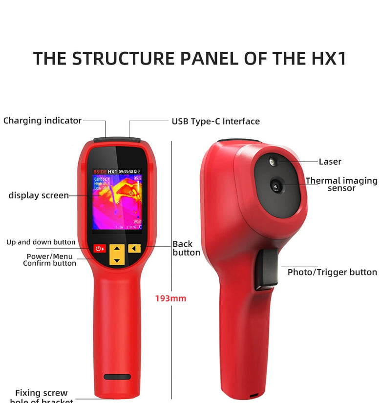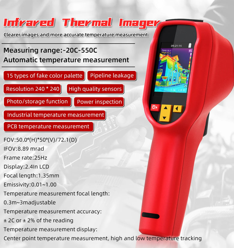 Versatile Temperature Measurement Range: Capable of measuring temperatures from -20°C to 550°C, this thermal imager is suitable for a wide range of environments and applications. Its high accuracy, with a temperature measurement resolution of 0.1°C, allows for precise readings in both industrial and research settings.