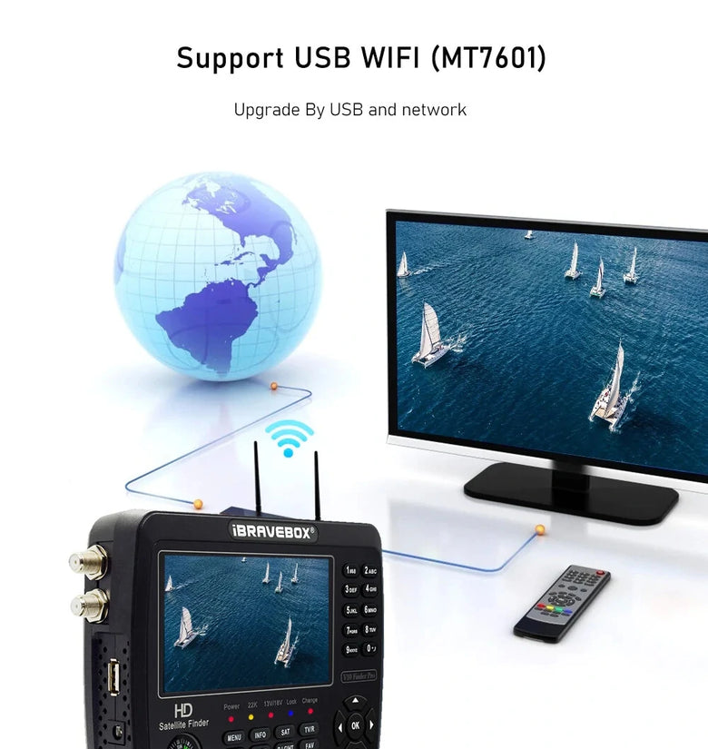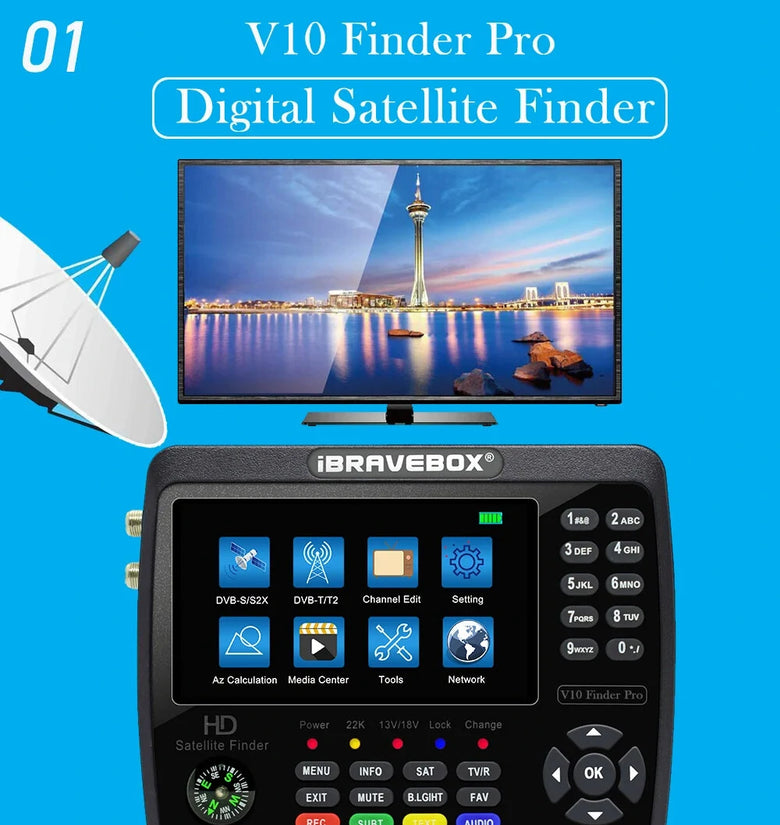 • iBRAVEBOX V10 Finder Pro H.265 DVB-S2/T2 Advanced Finder with High-Performance Flash Memory and LNB/Tuner Input