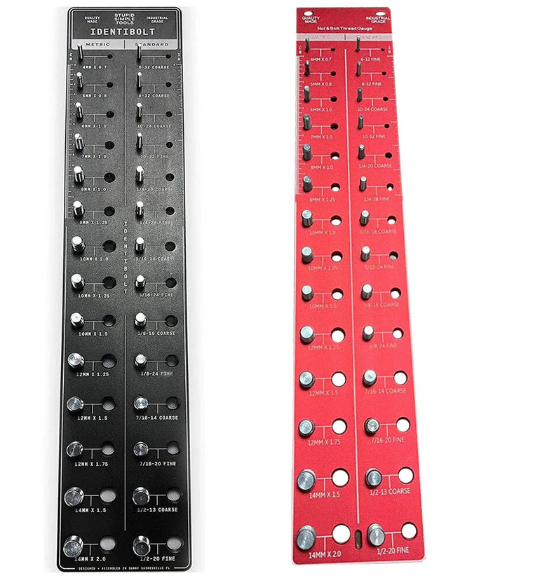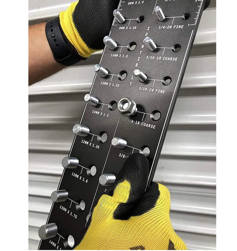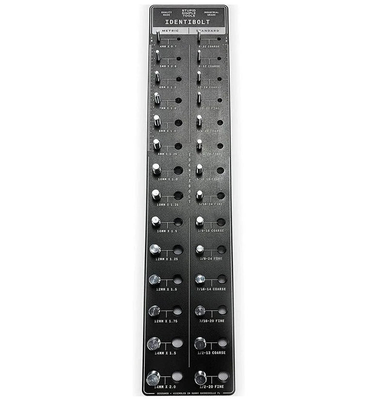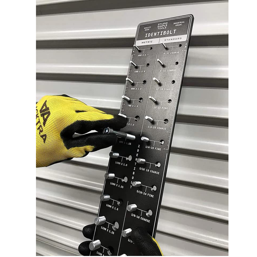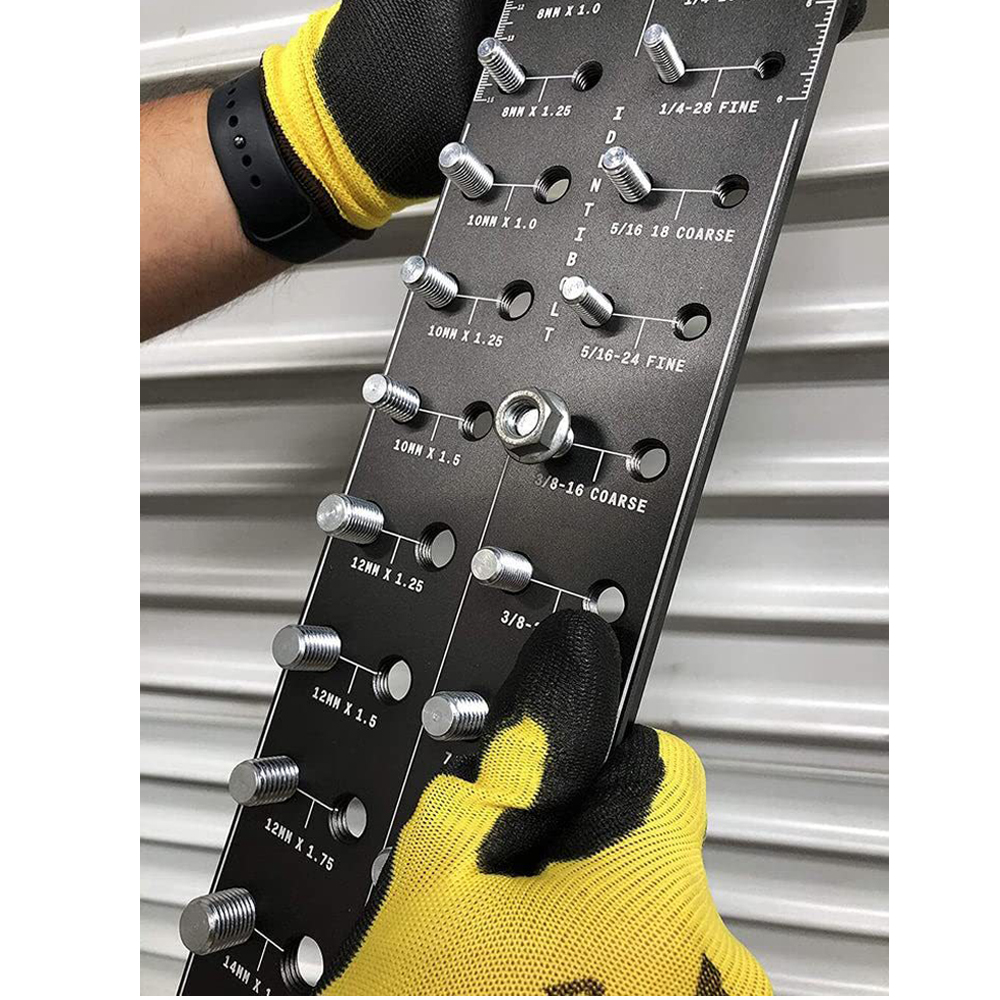 • Identibolt Bolt and Nut Identifier Gauge 4x20 Inches Anodized Grey Aluminum Fastener Measurement Tool with Laser Etched Markings and Twin Rulers for Ultimate Precision