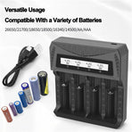 Compatible Batteries: 26650, 21700, 18650, 18500, 16340, 14500, AA, AAA