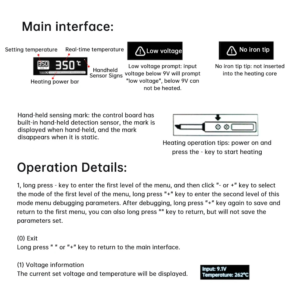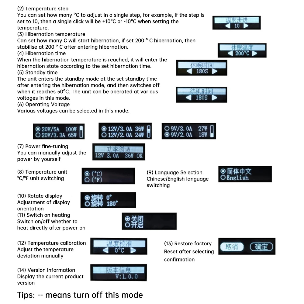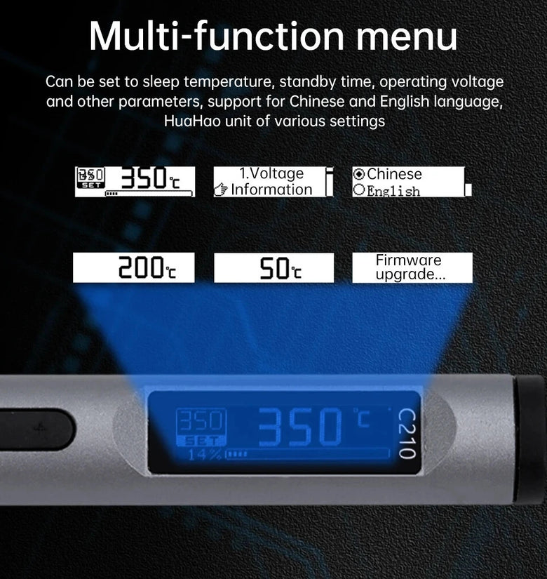 [Intelligent Temperature Control] Fast tinning in 2-5 seconds, accurate temperature control, fast temperature recovery, and customizable settings including sleep mode, temperature units, and language options.