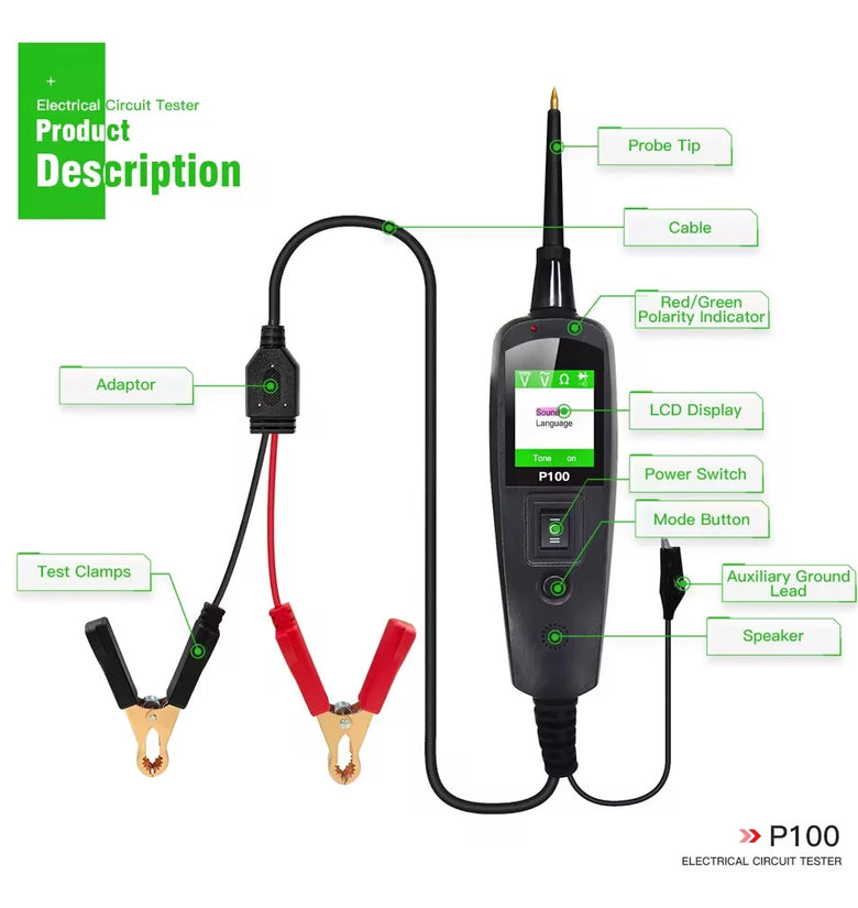 mso-bidi-font-family:'Times New Roman';font-size:10.5000pt;mso-font-kerning:1.0000pt;'>Wide Voltage Compatibility and Practical Design: Compatible with both 12V and 24V vehicles, this circuit tester is suitable for a wide array of automotive applications. The high-sensitivity probe and optional extension cables (2M) enable easy reach into hard-to-access areas, enhancing the tool’s practicality and convenience.mso-bidi-font-family:'Times New Roman';font-size:10.5000pt;mso-font-kerning:1.0000pt;'>