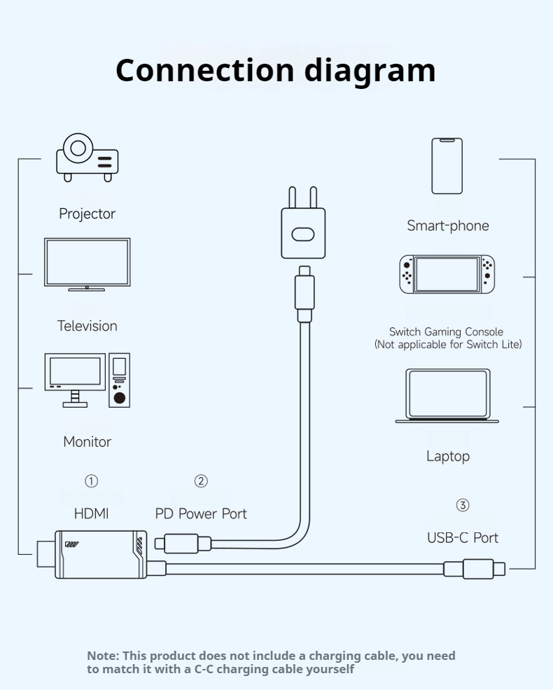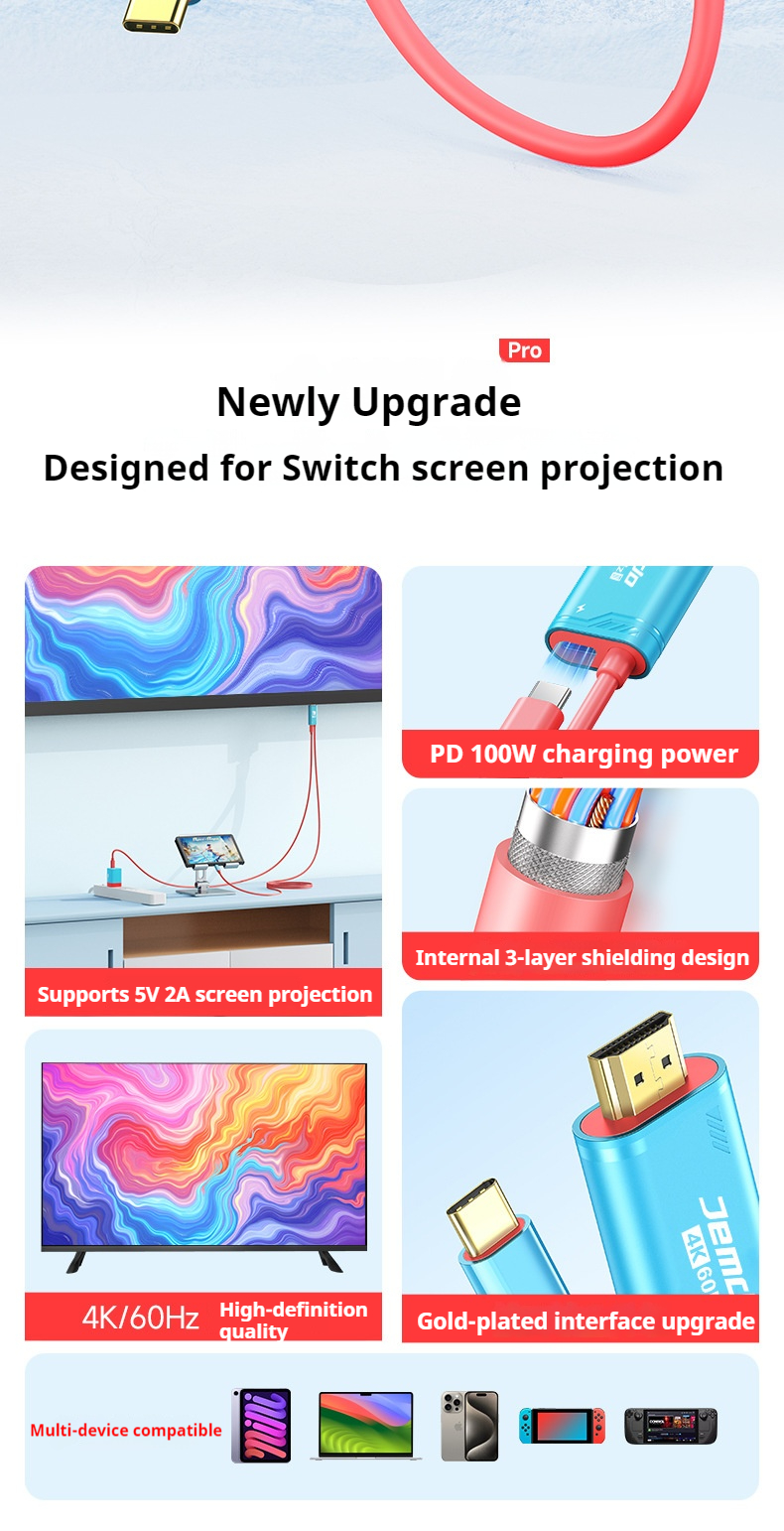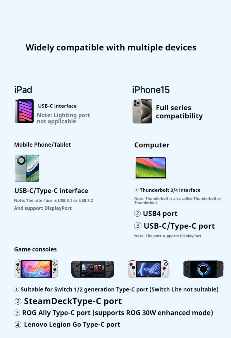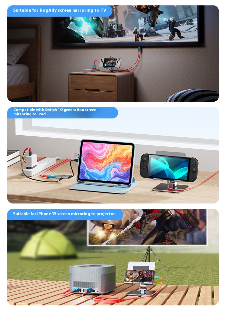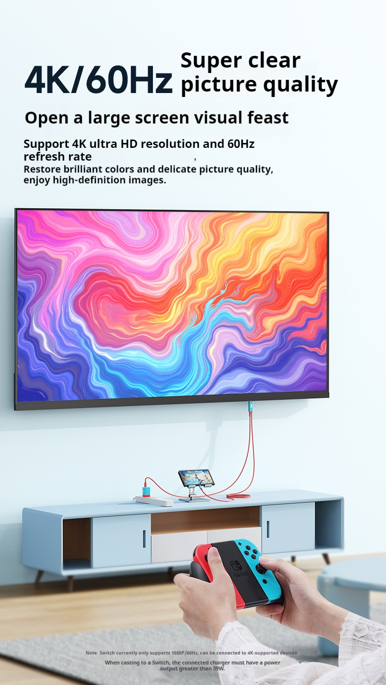 2. Wide Compatibility: Works with Switch consoles, laptops, smartphones, tablets, and other devices equipped with Type-C or HD.