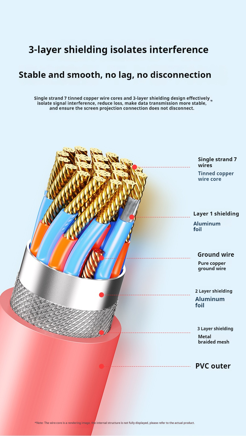 5. Triple Shield Design: Three-layer shielding ensures stable signal transmission and reduces interference for uninterrupted performance.