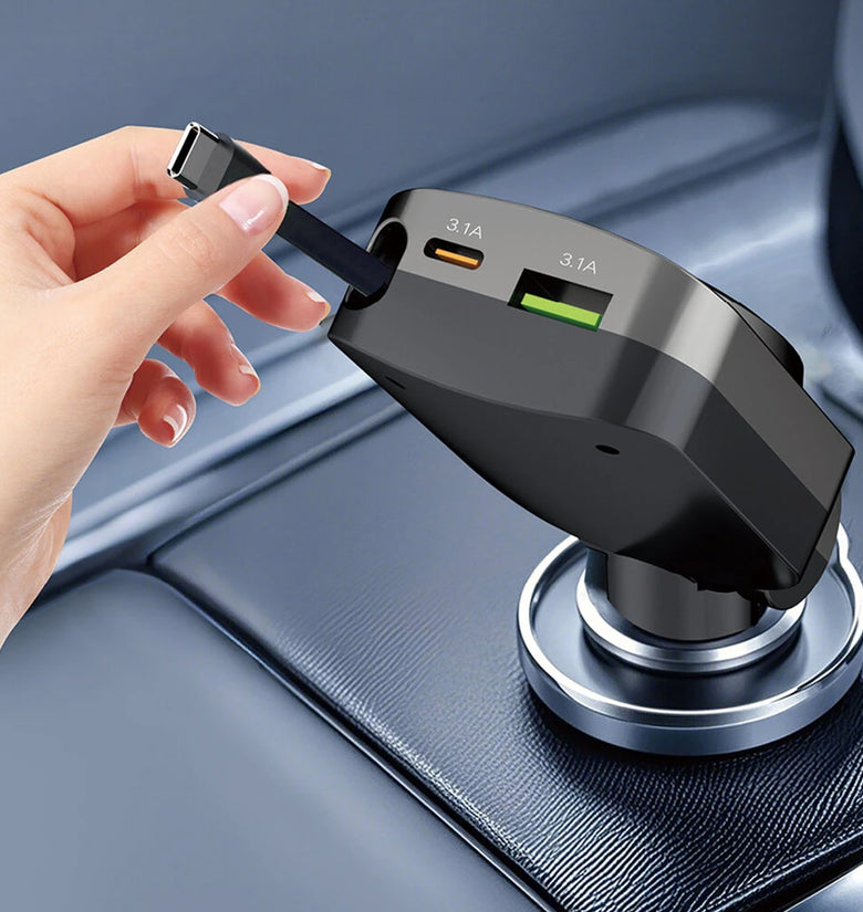 3. Retractable Type-C Cable: Expandable 80CM cord for convenience; automatic retraction for storage.