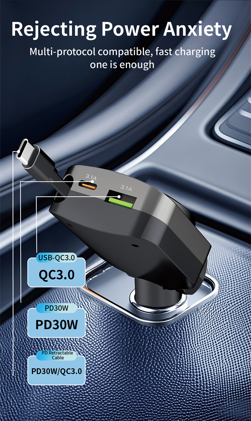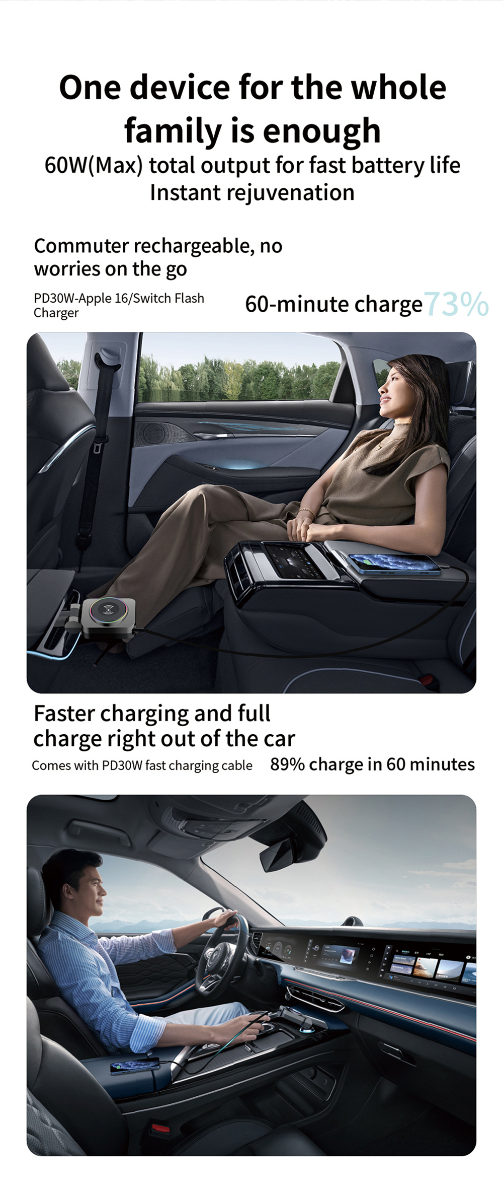2. PD30W Fast Charging: High-speed output to charge devices efficiently, reducing power anxiety during commutes.