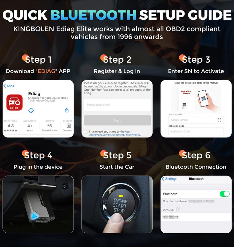 • KINGBOLEN Ediag Elite Diagnostic Tool OBD2 Scanner bluetooth Full System Diagnostics Professional Automotive Tools 15 Maintenance Reset Services