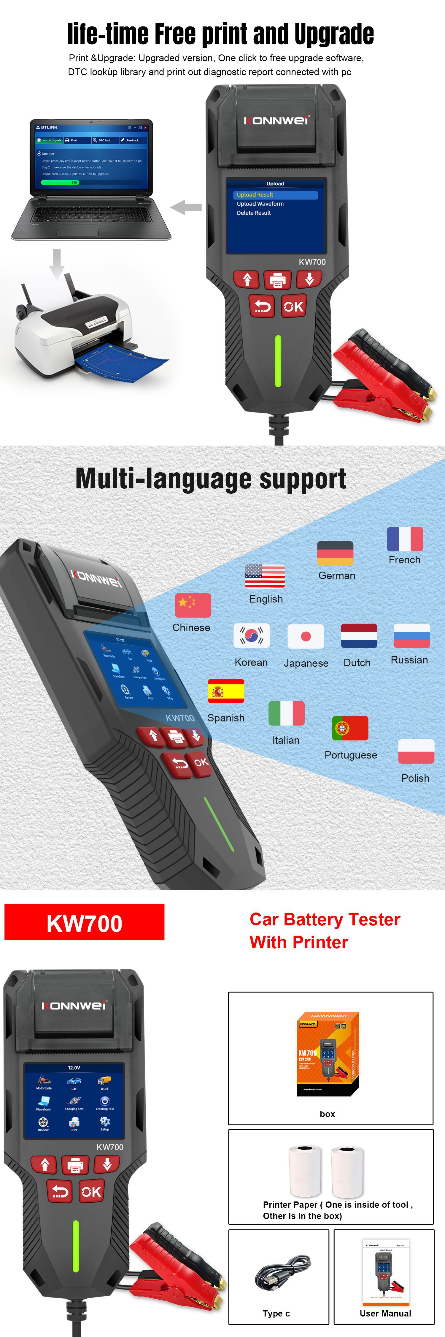 5. Lifetime Free Upgrade: Free software upgrades included, enabling extended compatibility with additional battery types and DTC libraries for professional diagnostics. Supports multilingual operations for global use.