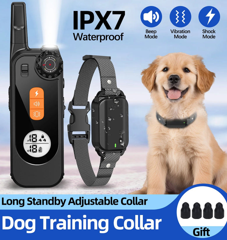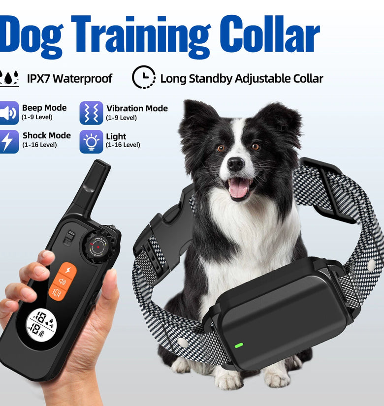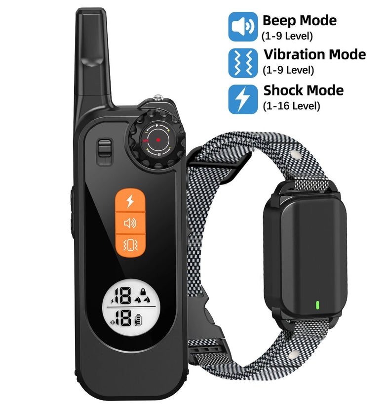 Training Modes: 3 modes and 1 light mode featuring beep (1-9 levels), vibration (1-9 levels), shock (1-16 levels), and a night light.