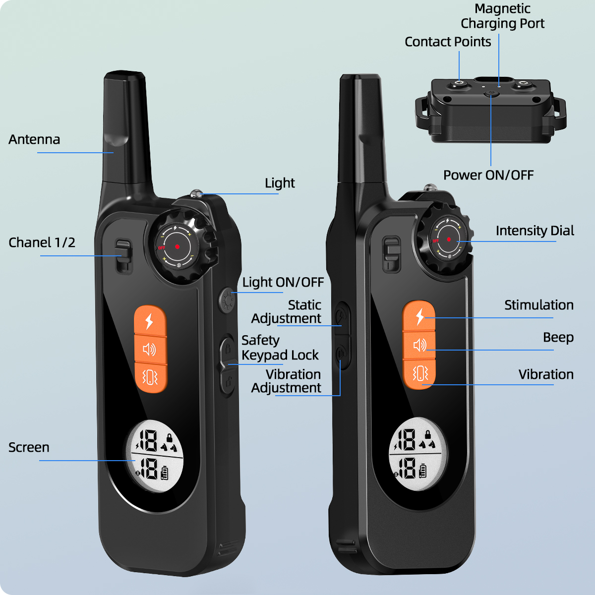4. Waterproof Collar: IPX7-rated receiver enabling stress-free usage during water activities.