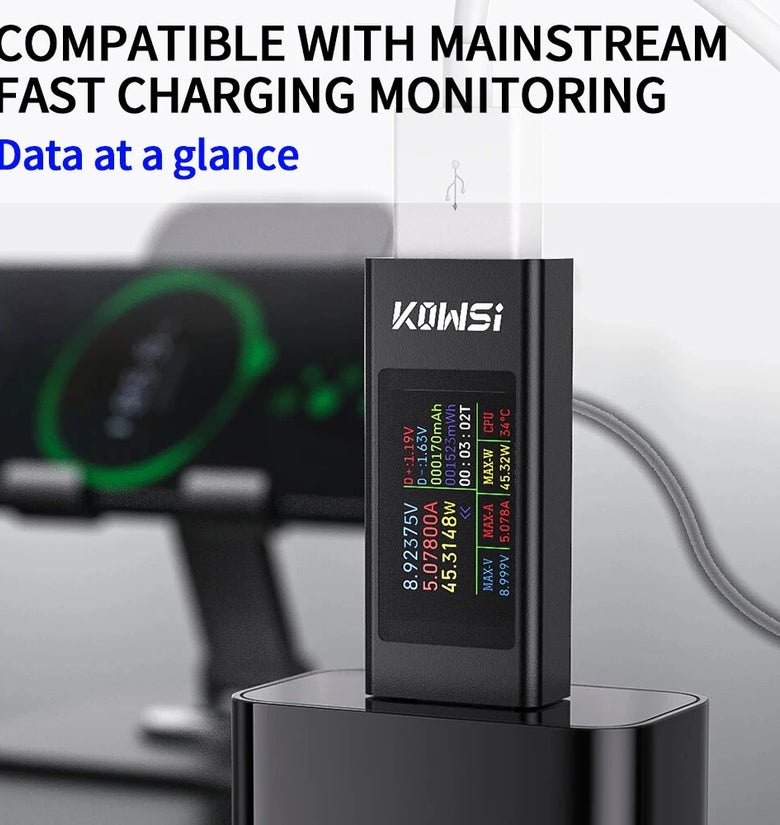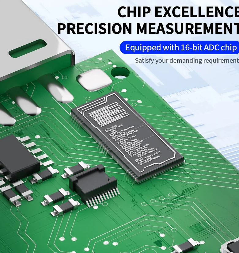 2. Comprehensive Metrics: Instantly identify and display important charging parameters such as voltage, current, power, energy, capacity, and timing all in one interface.