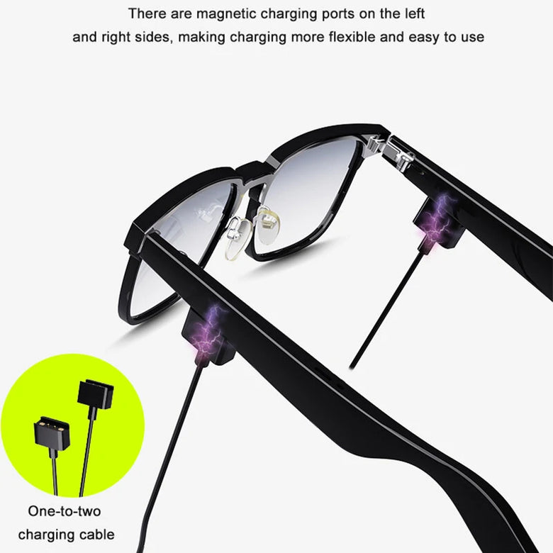 1. High Definition Audio: Equipped with a HiFi Stereo ACC Audio, these glasses deliver superb sound quality, making calls, and listening to music an enjoyable experience.2. Anti Blue Light Protection and Comfort: Designed with anti-blue light lenses to protect your eyes from harmful blue light. At a lightweight of 35g, they are comfortable for prolonged wear.3. Durable Battery Life: Powered by a 100+100mAh polymer battery to ensure a long lasting experience whether you're making calls or listening to music.4. Efficient Charging: The magnetic suction charging interface ensures a secure connection and efficient charging for the glasses which are fully charged in 60 minutes.5. Waterproof: Features an IPX4 waterproof rating that can withstand splashes of water from any direction, making it ideal for outdoor use.