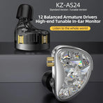 • KZ AS24 24BA Units Wired Earphone 12 Balanced Armature Drivers HiFi Sound Noise Cancelling 3.5mm DJ Monitor Earbuds Sport Headset