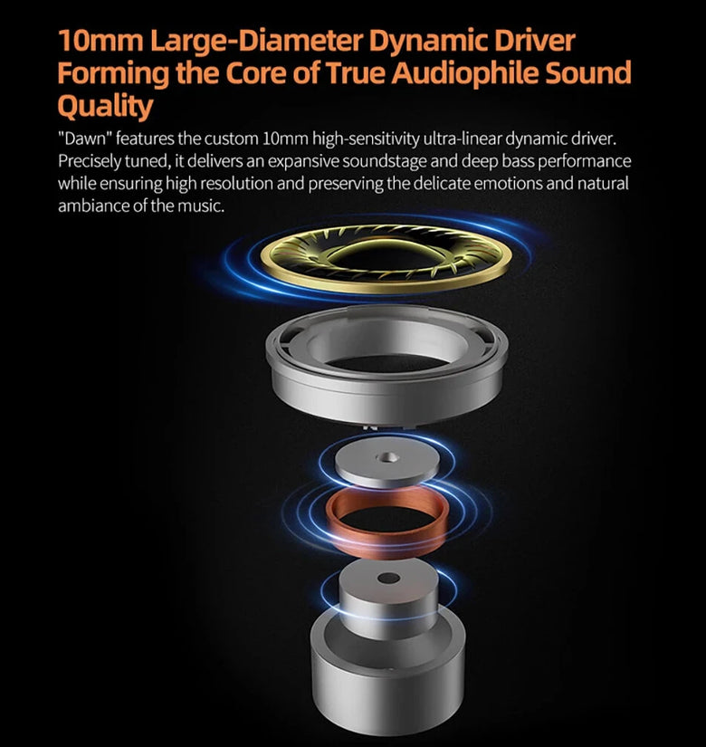 1. Super-Linear Dynamic Driver: Equipped with a 10mm super-linear dynamic driver that delivers exceptional bass and detailed sound reproduction.