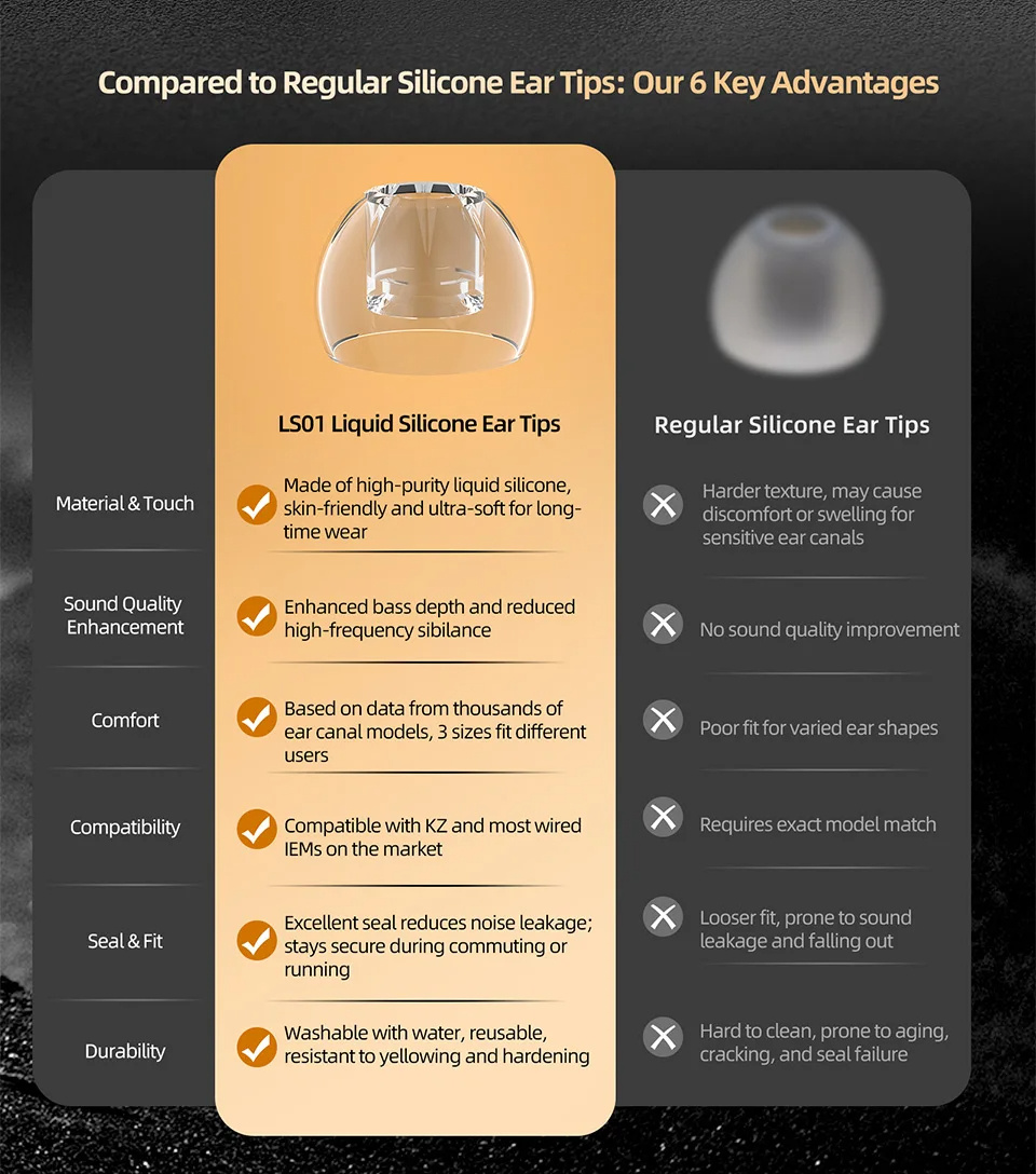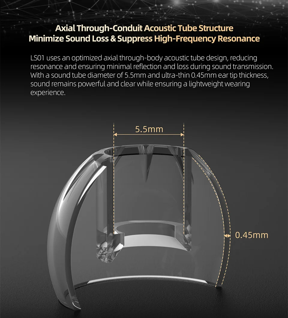 2. Reduce Sibilance & Enhance Treble Clarity : Thanks to the liquid silicone material and precision-fit design, LS01 effectively reduces sibilance, setting a new standard for treble clarity and detail reproduction. High frequencies become more vivid and natural, with excellent resolution and detail performance.