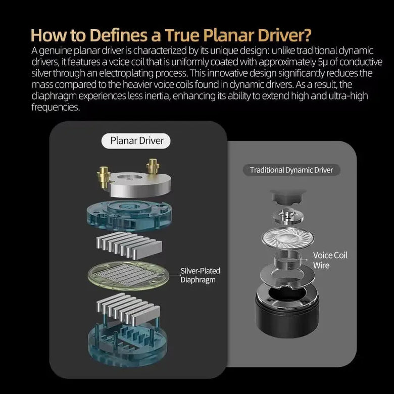 1. Innovative Planars Diaphragm: Lighter than traditional dynamic and balanced armature drivers, providing exceptional high-frequency and ultra-high-frequency extension for an elevated audio experience.