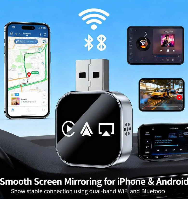Fast Wireless Performance: Screen Mirroring Adapter for Car Instantly mirror your for iPhone or Android display in your car with minimal latency, enjoying navigation, video, and music.