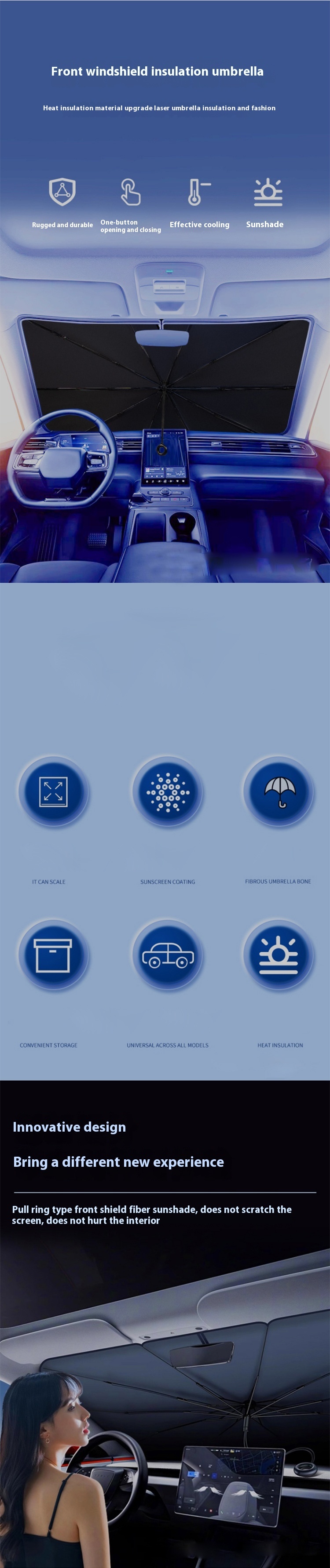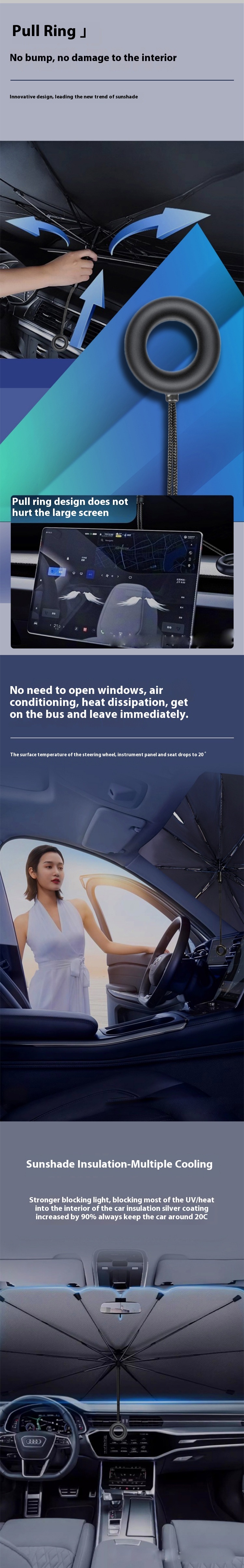 Equipped with an easy-to-use pull-ring, the sunshade can be deployed or retracted effortlessly without scratching the dashboard or touchscreen.