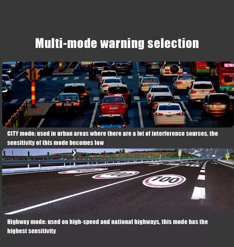 - Adaptable Detection Modes: Offers City and Highway detection modes, easily switchable via the CITY button, optimizing detection sensitivity based on the driving environment.