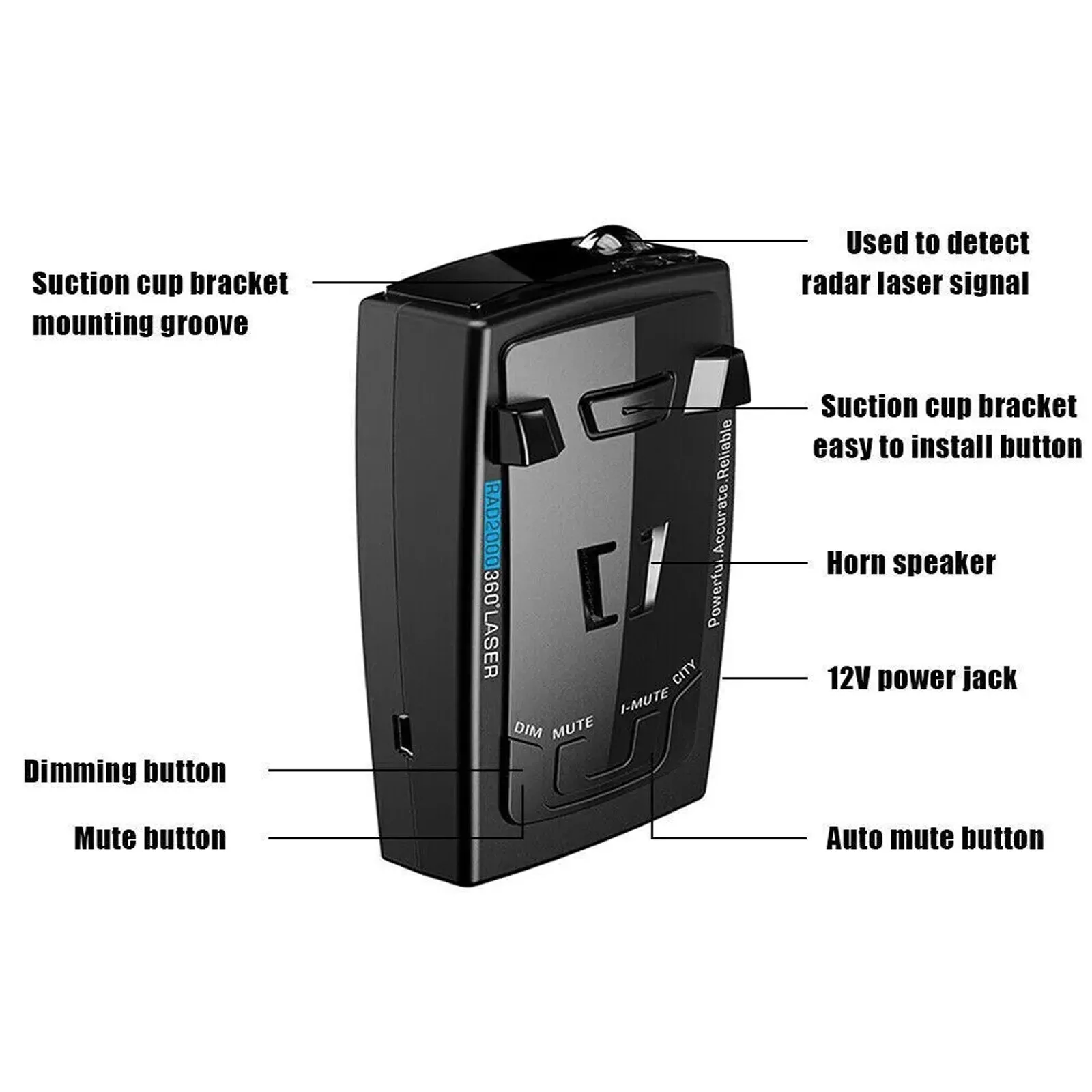 • Laser Radar Detector Long Range Detection 360 Degree Laser Police Detector Laser Detection Speed Alarm