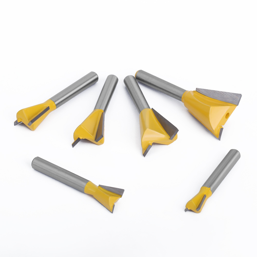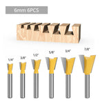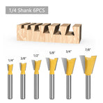 • LAVIE 6pcs 6mm 1/4" Shank Dovetail Joint Router Bit Set 1/4" 3/8" 1/2" 5/8" 3/4" 7/8" Cutting Dia Wood Milling Cutter Tool for Making Boxes Drawers Chests