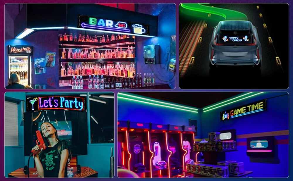 • LED Car sign, programmable LED sign, Flexible Matrix panel by Bluetooth APP, Bright scrolling LED sign, LED Display and Sign board for store, shop, bar and business areas