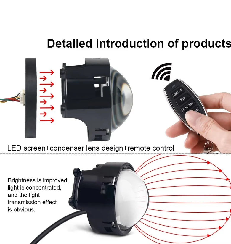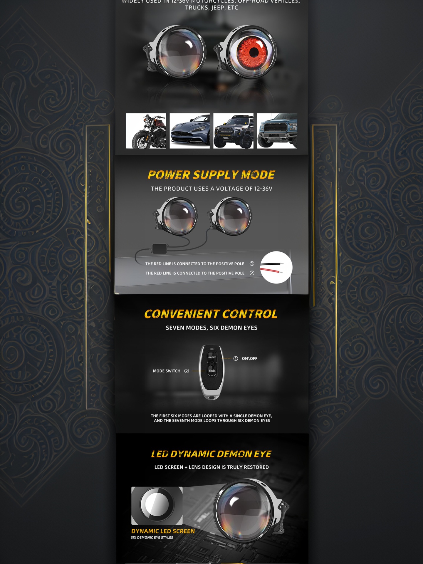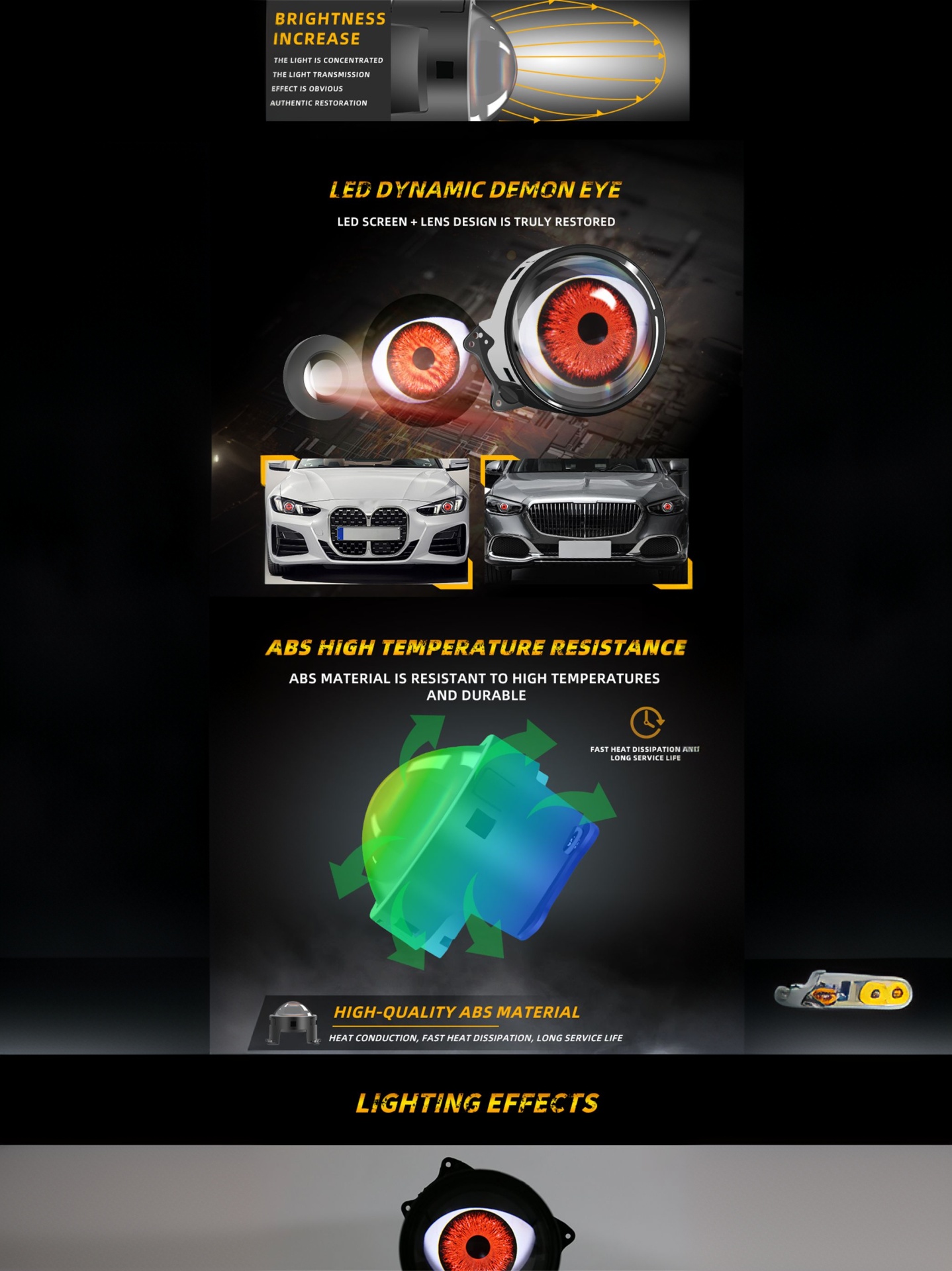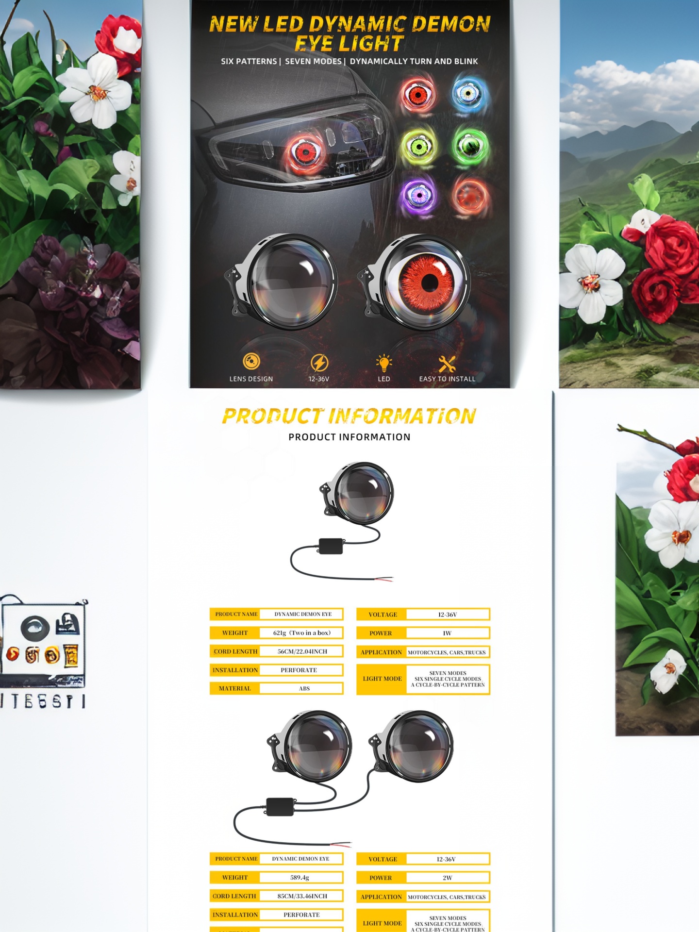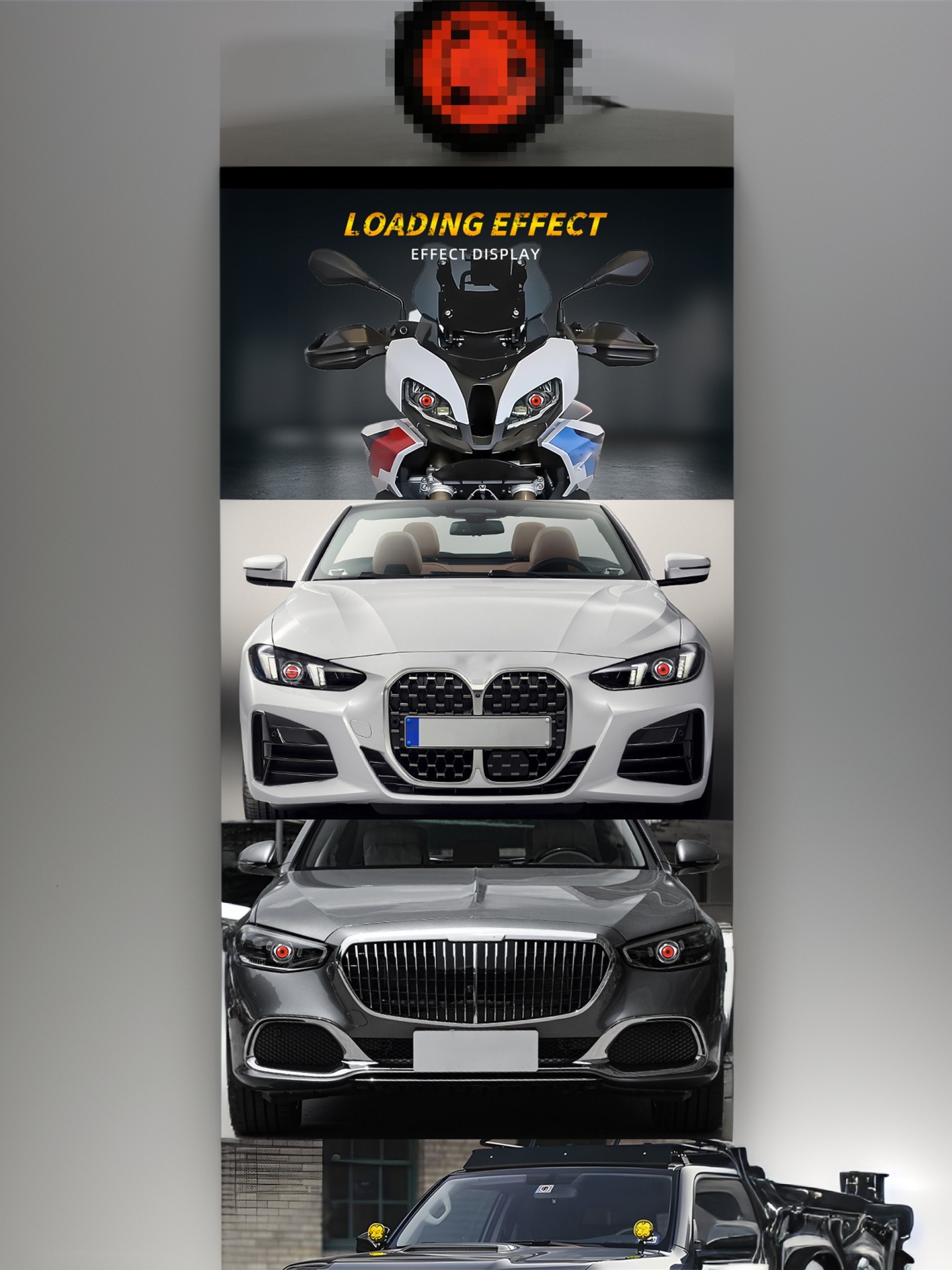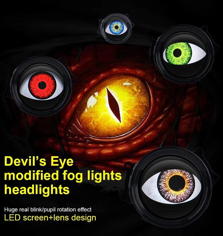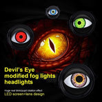 1. Dynamic LED Screen with Lens Design: Radiates authentic illumination mimicking demon-like eyes, enhancing visual aesthetics for cars, motorcycles, and trucks.