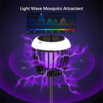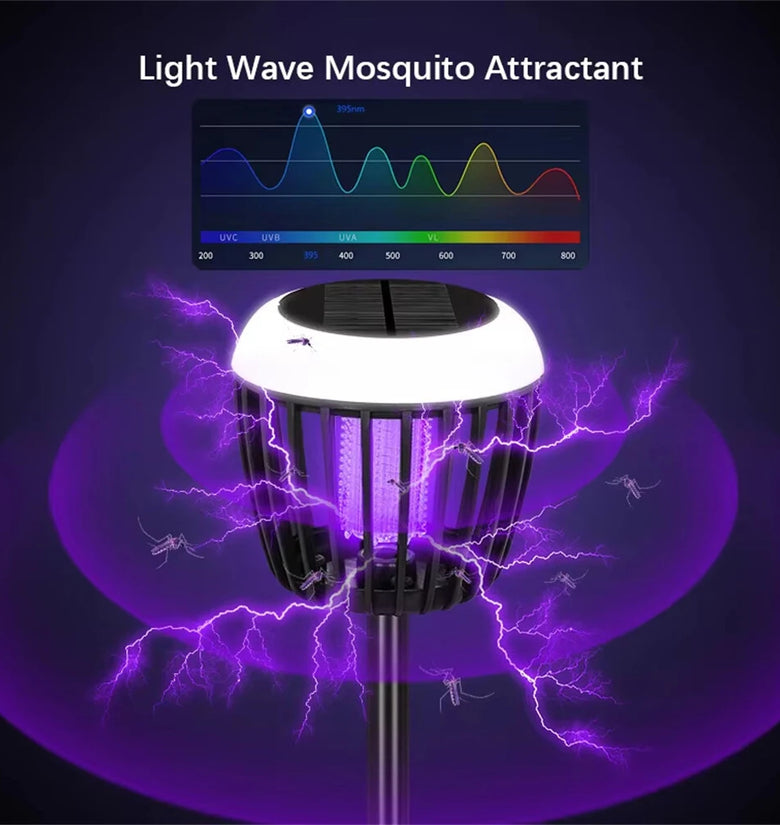 - Safe & Versatile Design: Equipped with a protective net to prevent accidental contact, this lamp offers enhanced safety for families with children and pets. It also includes an optional extension pole for flexible installation—use it close to the ground for subtle lighting, or elevate it to expand coverage across your lawn or garden.  - Eco-Friendly Solar Power: Harness the power of the sun with a built-in solar panel that ensures efficient, cost-saving charging during the day—no wiring or external electricity needed.  - Dual Mosquito Control & Lighting: Features a built-in UV light that effectively attracts and traps mosquitoes, helping to keep your outdoor spaces bug-free. Perfect for summer evenings on the patio or in the yard.  - Customizable Lighting Modes: Choose from 3 smart modes to fit your needs: Illumination Mode for soft garden lighting, Mosquito + Illumination Mode for dual functionality, or Mosquito Mode for targeted pest control.  - Built for the Outdoors: With an IP65 waterproof rating, this lamp is designed to withstand rain, wind, and dust, making it a reliable lighting and pest-control solution in any weather condition.