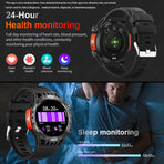 LIGE 1.46inch HD Screen Massive Battery Compass bluetooth Call Heart Rate Blood Pressure Monitor SOS Emergency Call Sleep Monitoring Multi-sport Modes Music Playback 10M Waterproof Smart Watch with Flashlight