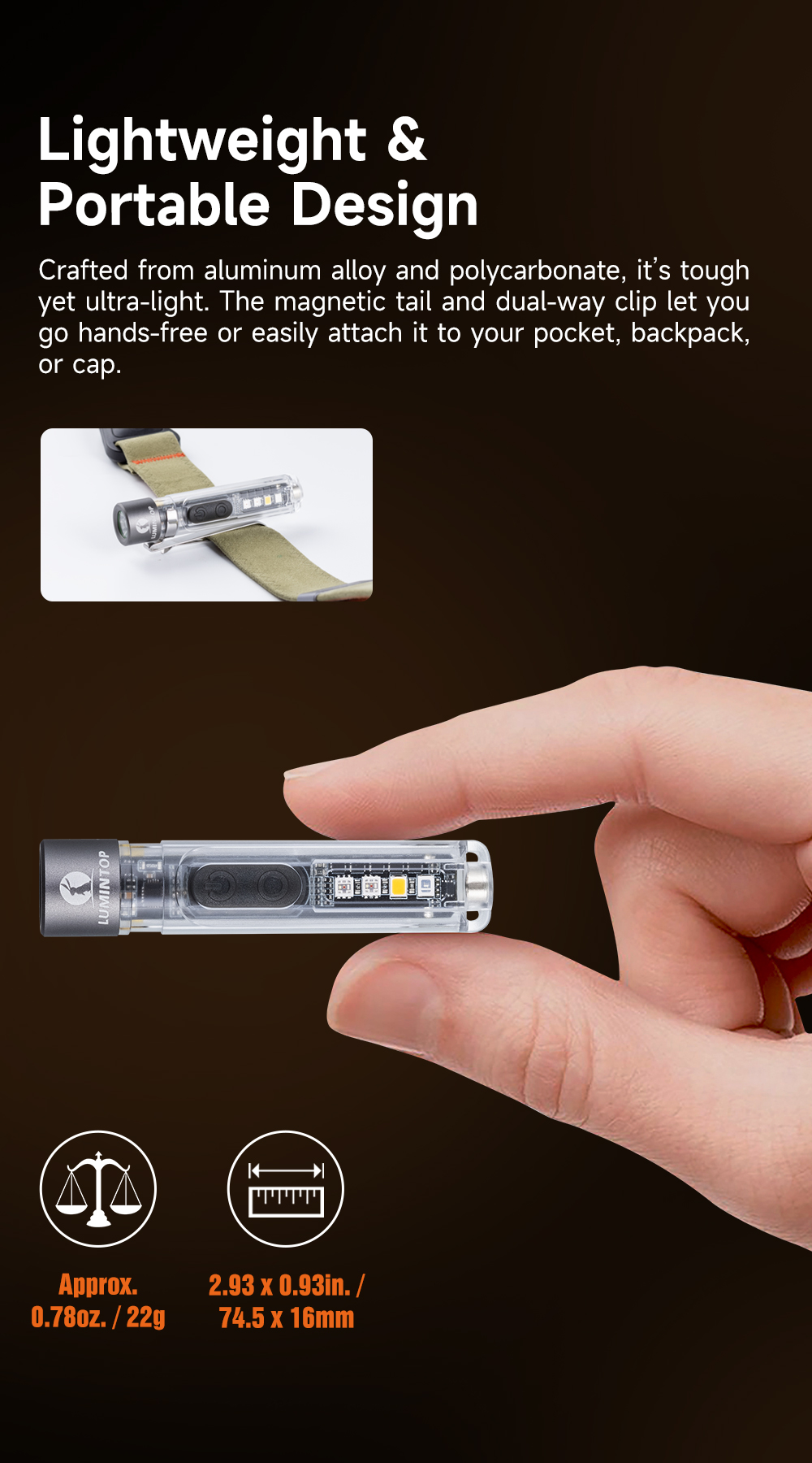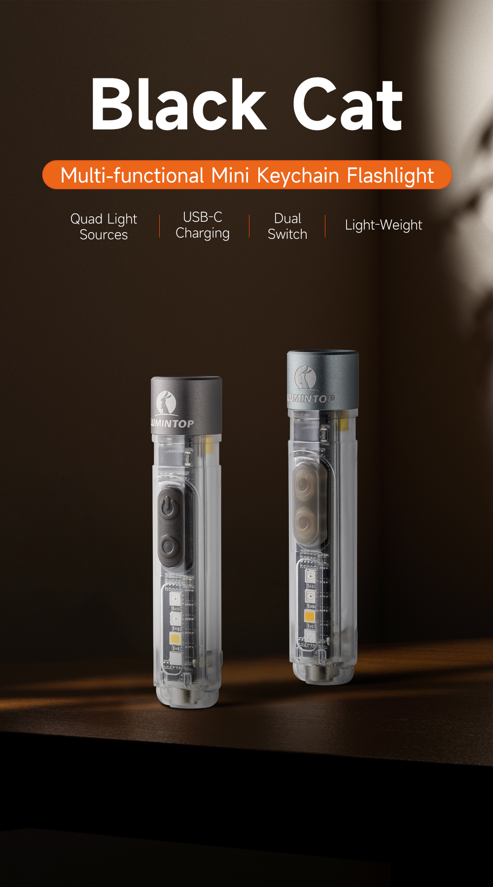 • Lumintop Black Cat 400LM 90M LED Keychain Flashlight with Magnetic Base USB Rechargeable Super Bright Portable Mini Torch for Camping and Outdoor Activities