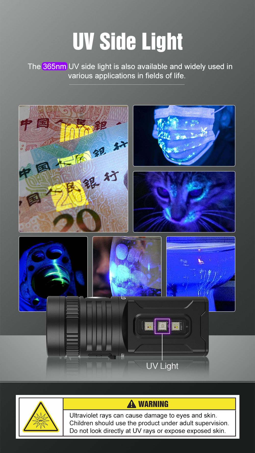 6.UV: Press and hold the switch from OFF.