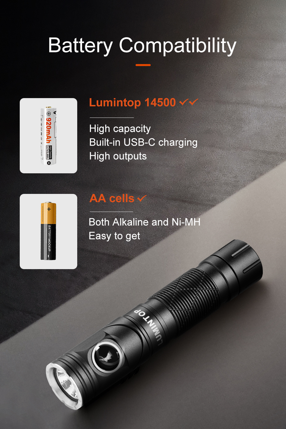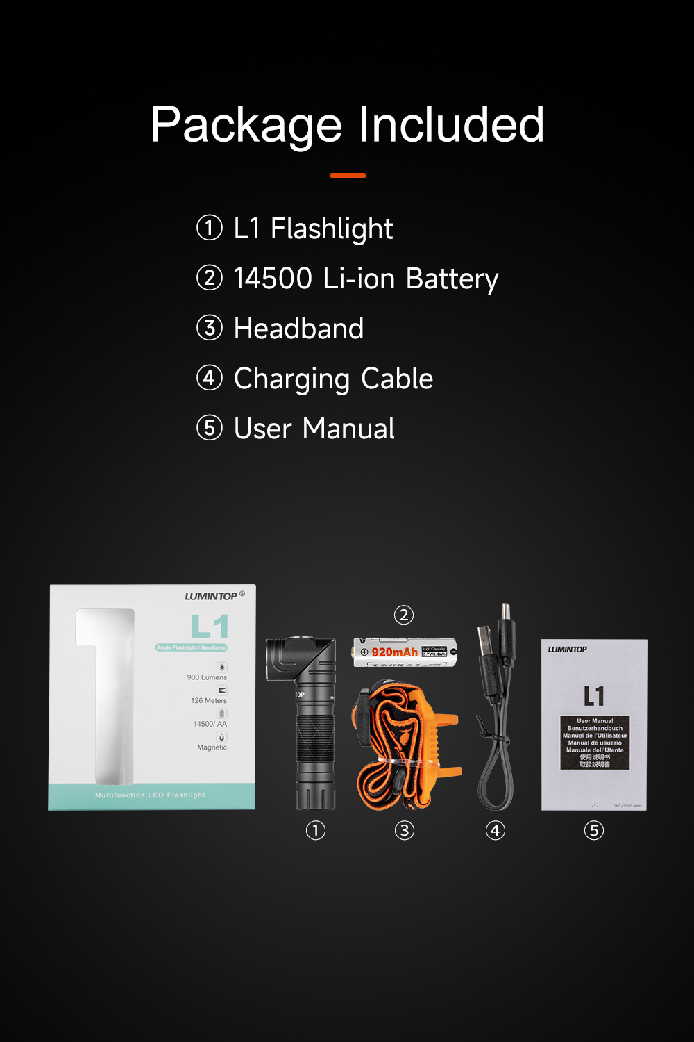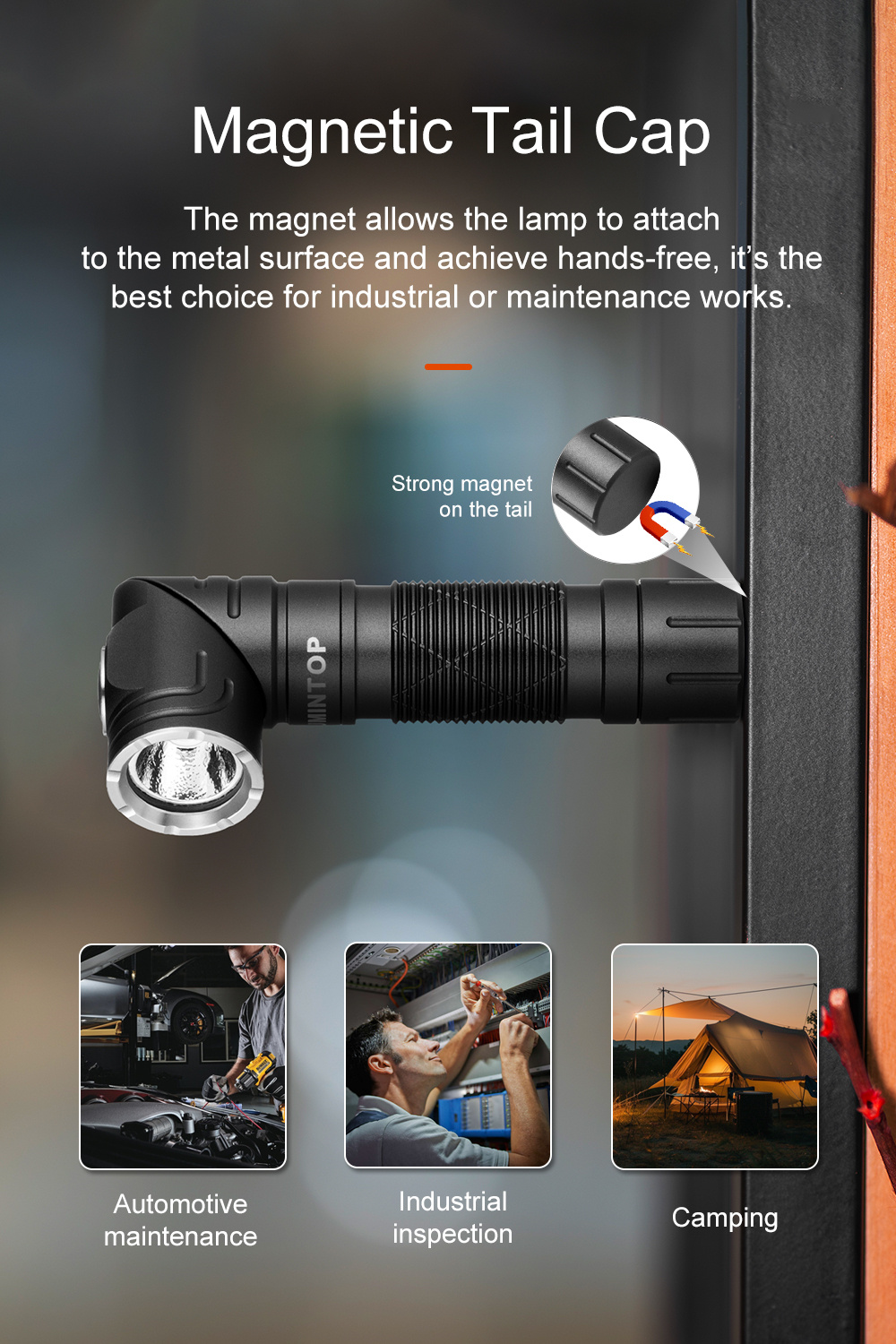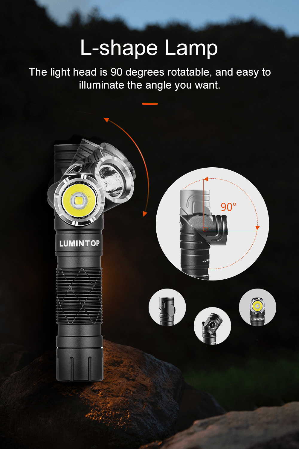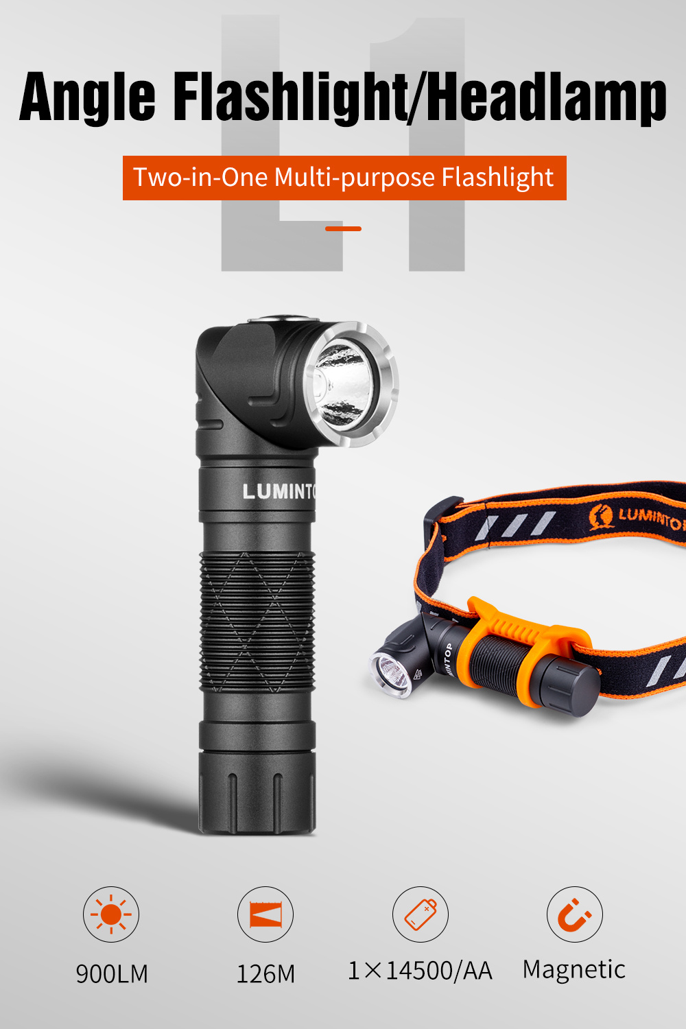 • Lumintop L1 Rotating Flashlight 900 Lumen 126 Meters L Flashlight 90 Degree Change 14500 Flashlight with Magnetic Tail Camping Flashlight Torch