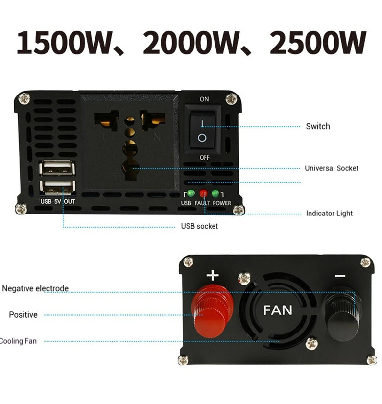 Premium Power Conversion: Offers stable 12-24V DC to 220V AC power conversion for essential devices during outdoor use or emergencies.