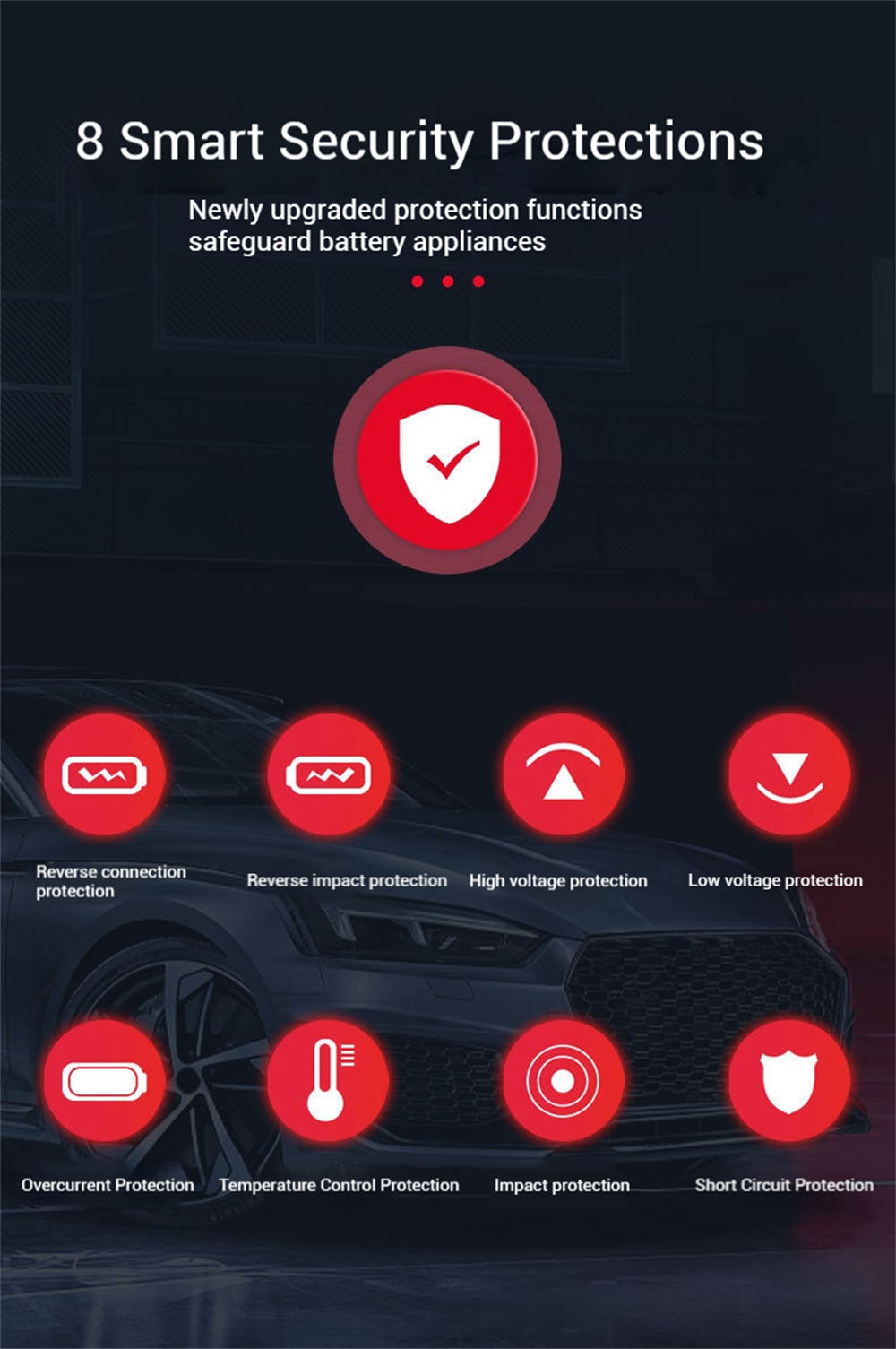 Enhanced Safety: Integrated 8-tier protection against over-voltage, under-voltage, short circuit, overload, and temperature spikes.