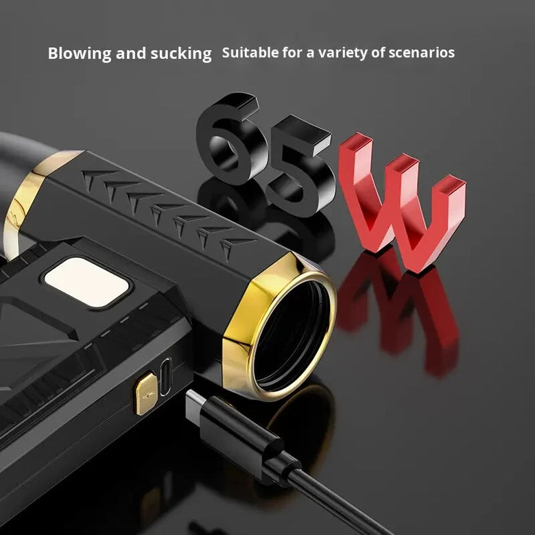 Adapts to versatile tasks, including cleaning tight spaces, removing debris, or inflating objects. Suited for both complex car interiors and household use.