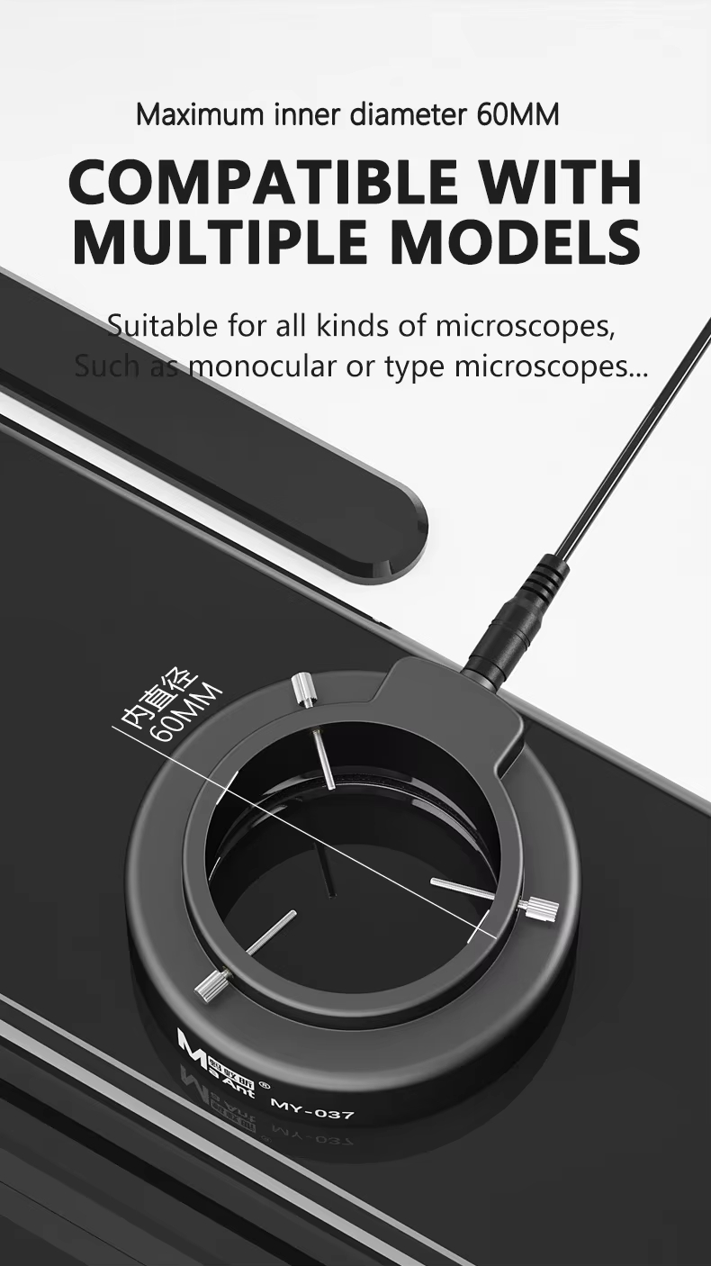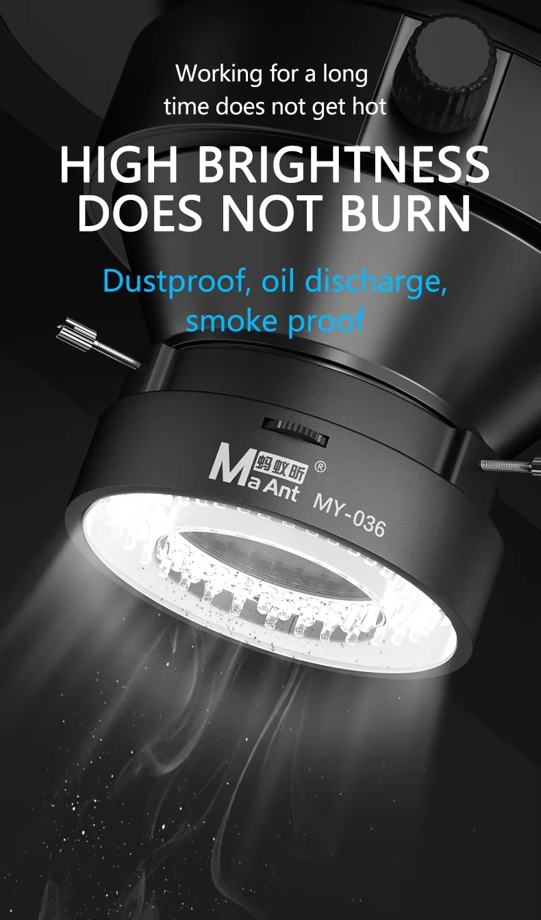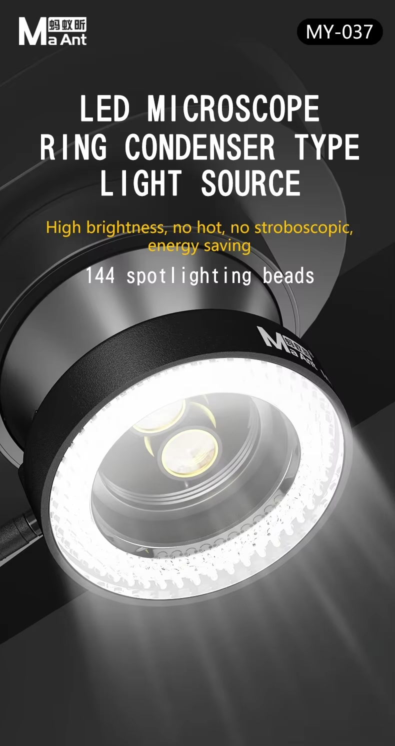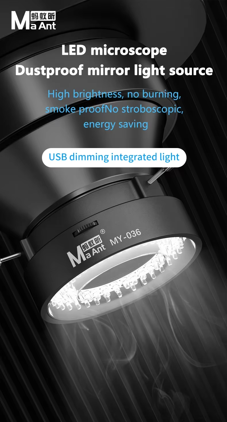 4. LED Microscope Ring Lamp:The MaAnt MY-035/036/037/038 LED microscope ring lamp offers bright, even illumination for intricate tasks.