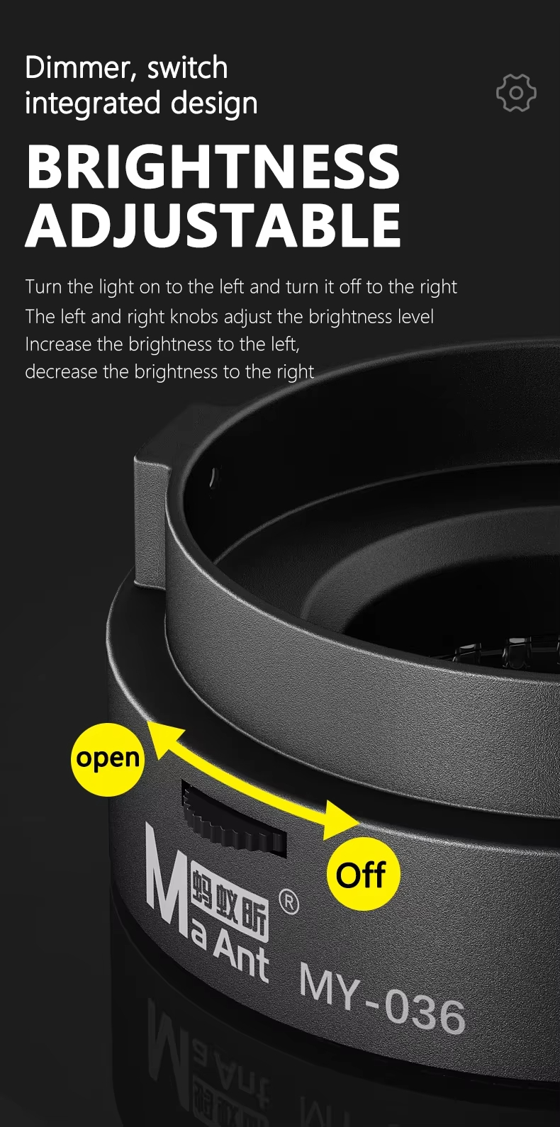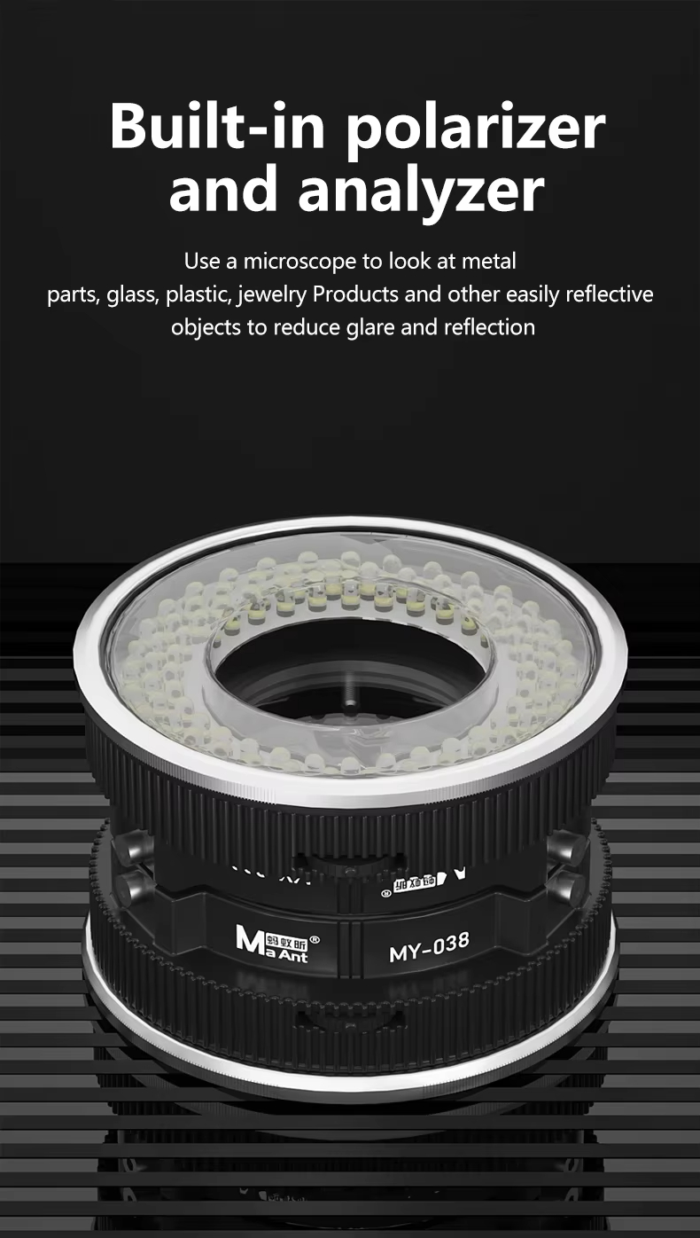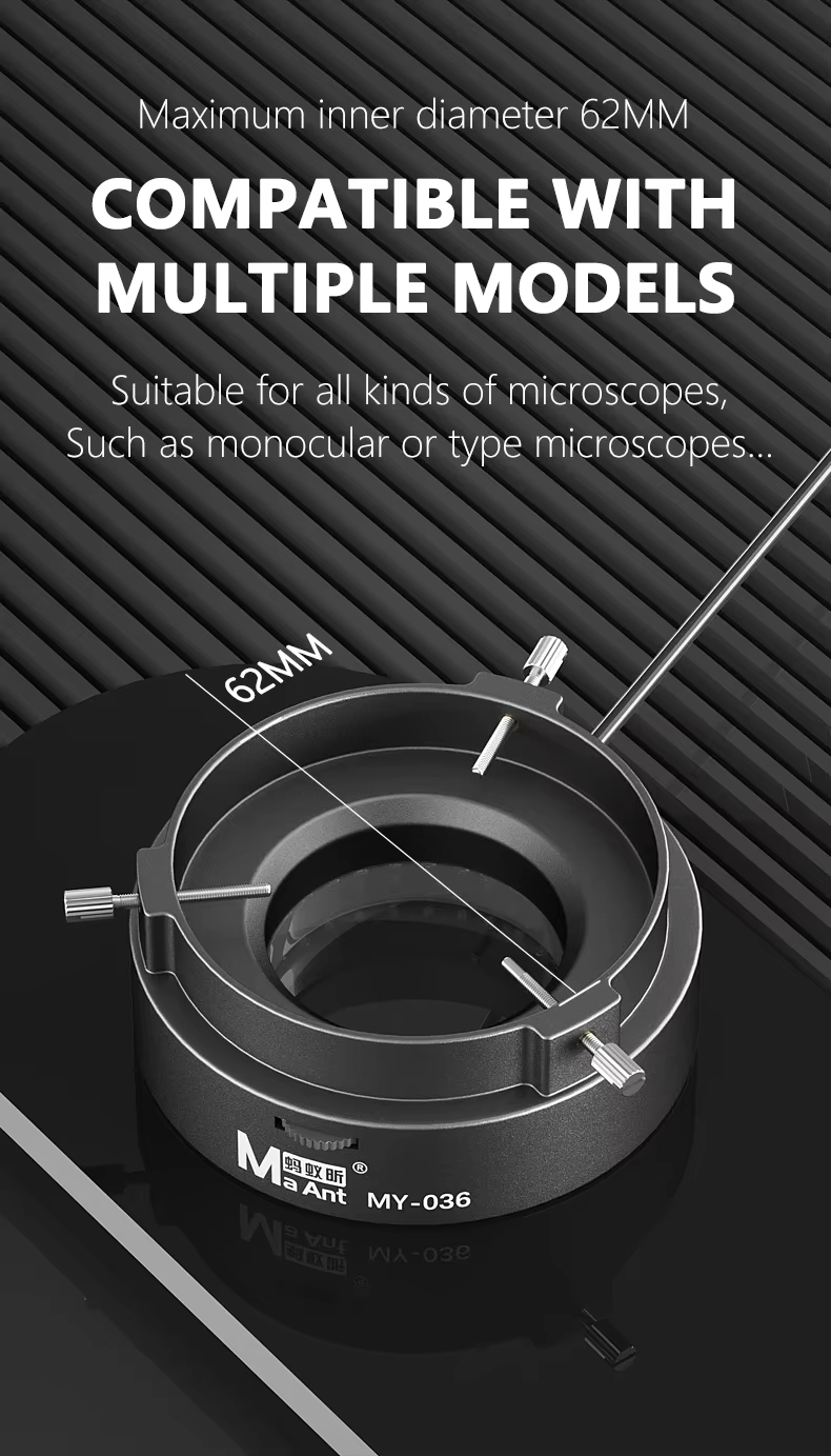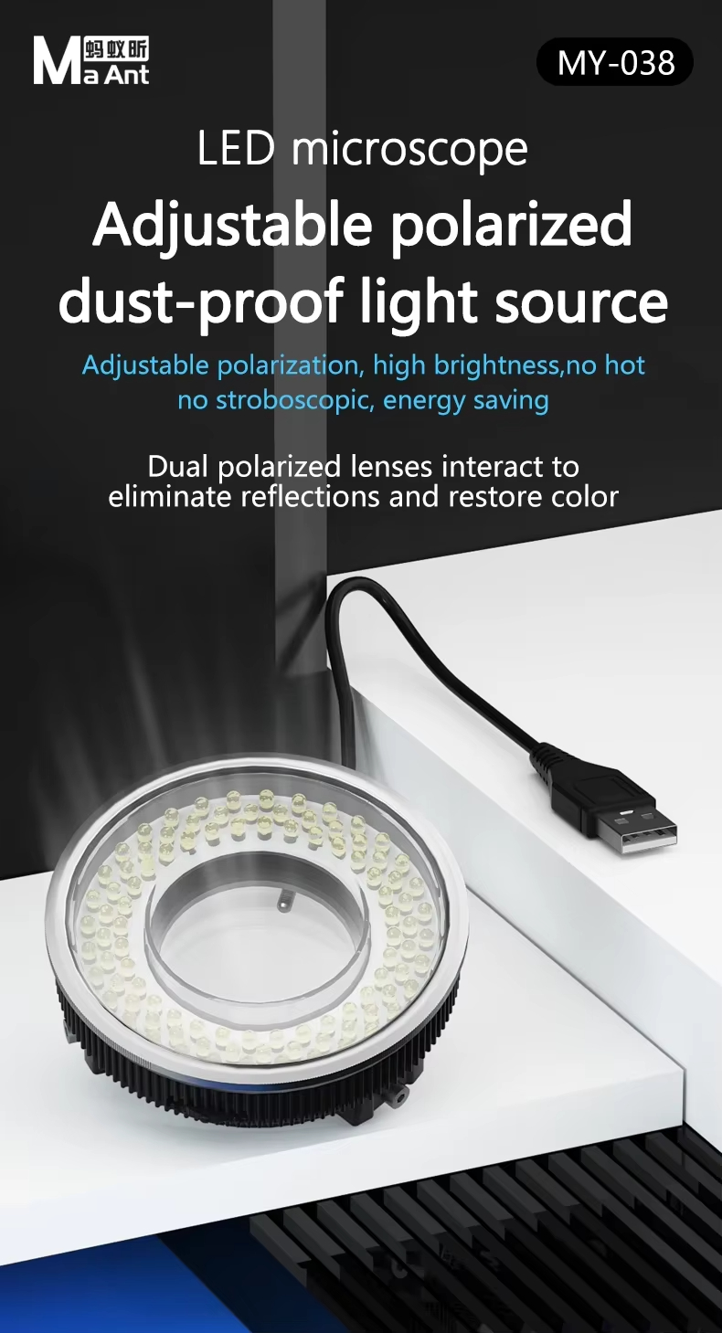 4. LED Microscope Ring Lamp:The MaAnt MY-035/036/037/038 LED microscope ring lamp offers bright, even illumination for intricate tasks.