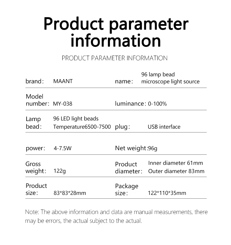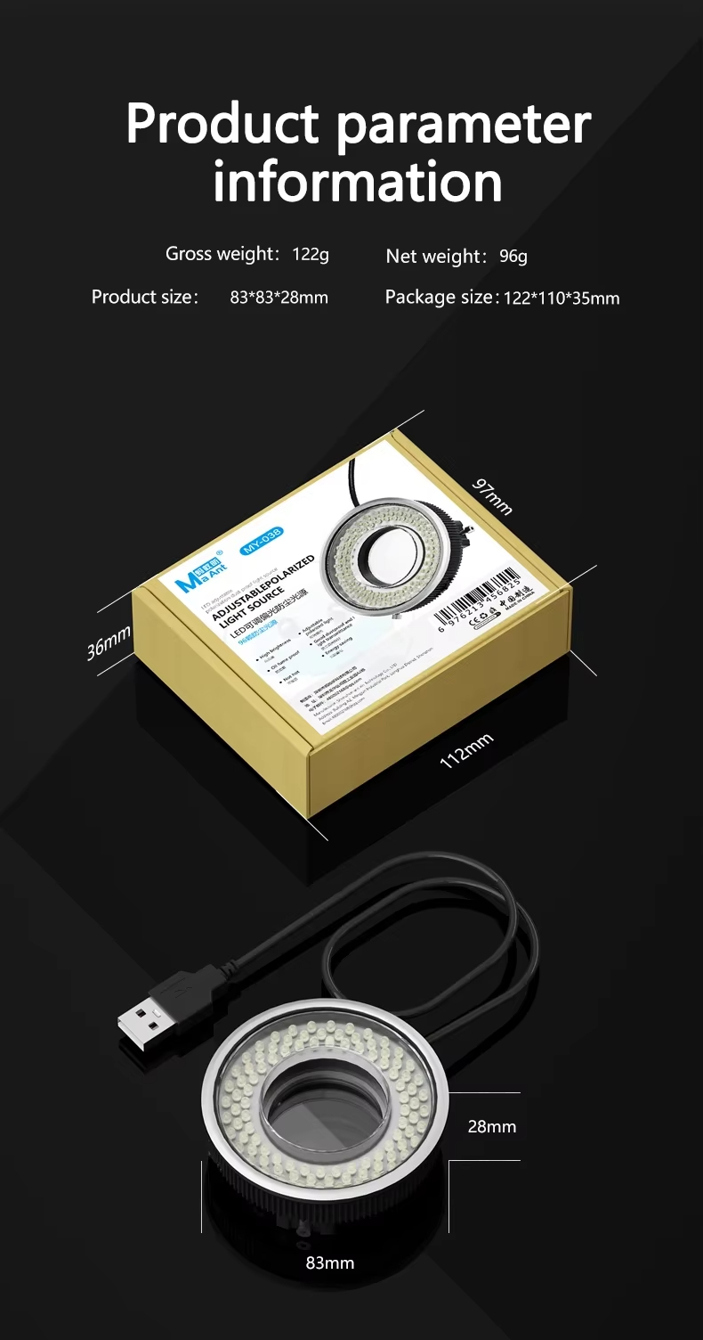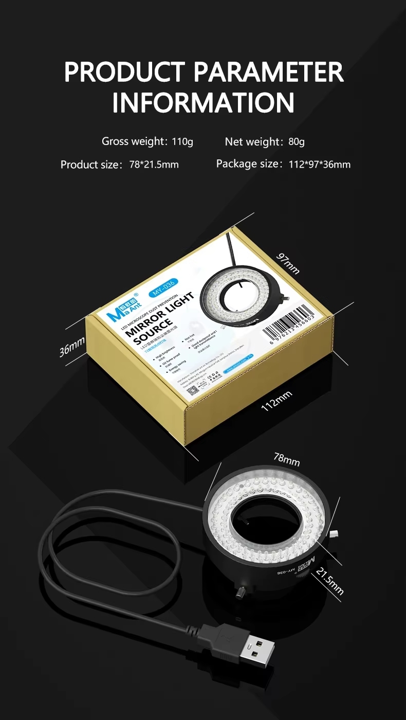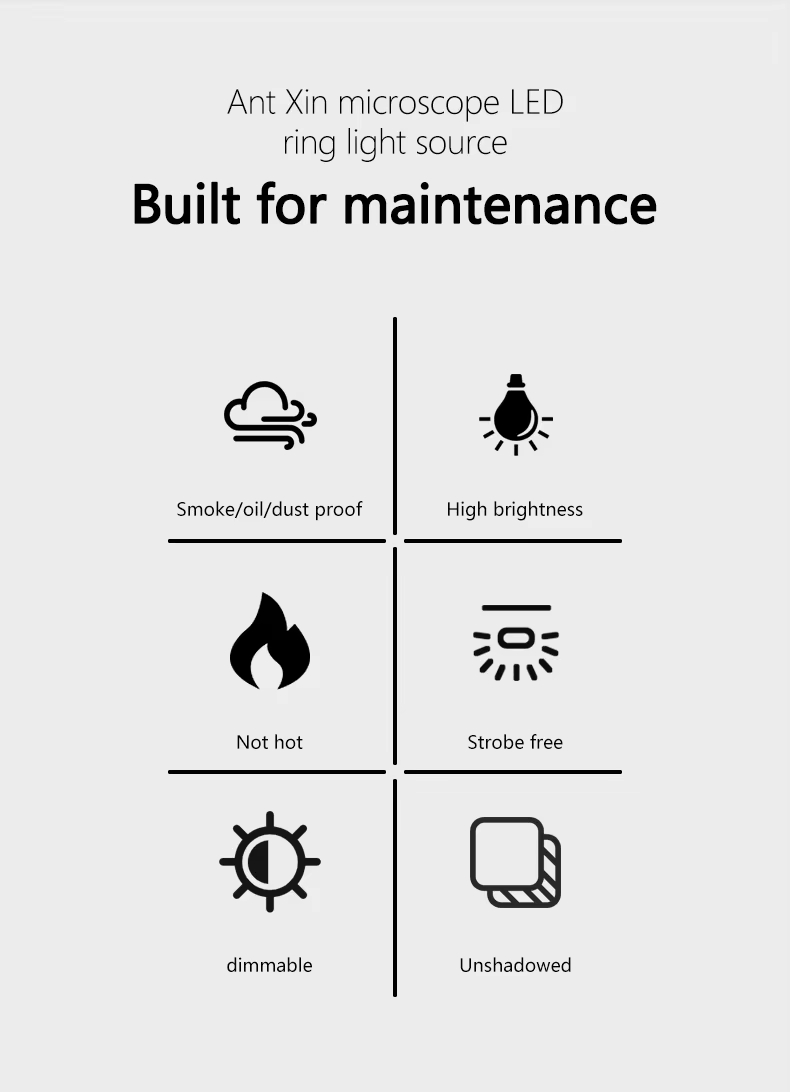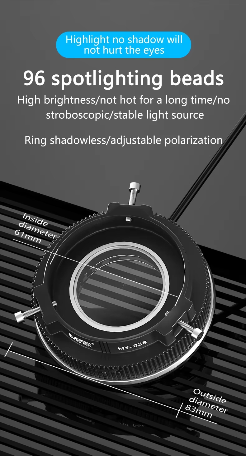 4. LED Microscope Ring Lamp:The MaAnt MY-035/036/037/038 LED microscope ring lamp offers bright, even illumination for intricate tasks.