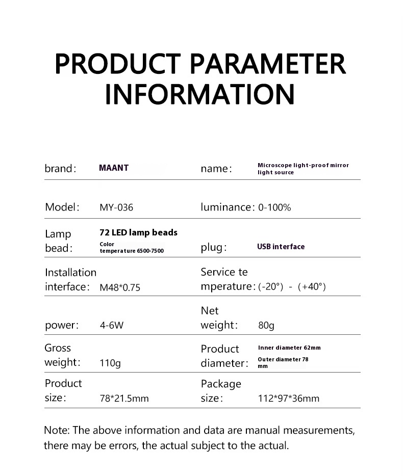 5. Maant My 035|Maant My 036|Dustproof Light Source:Engineered for clean workspaces, the dustproof MaAnt MY-035/036/037/038 light source ensures pristine visuals.