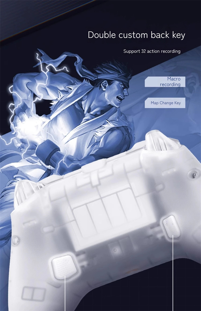 5. Dual Macro Back Buttons: Enhance your gameplay with two customizable back buttons supporting 32 action recordings for complex command executions.