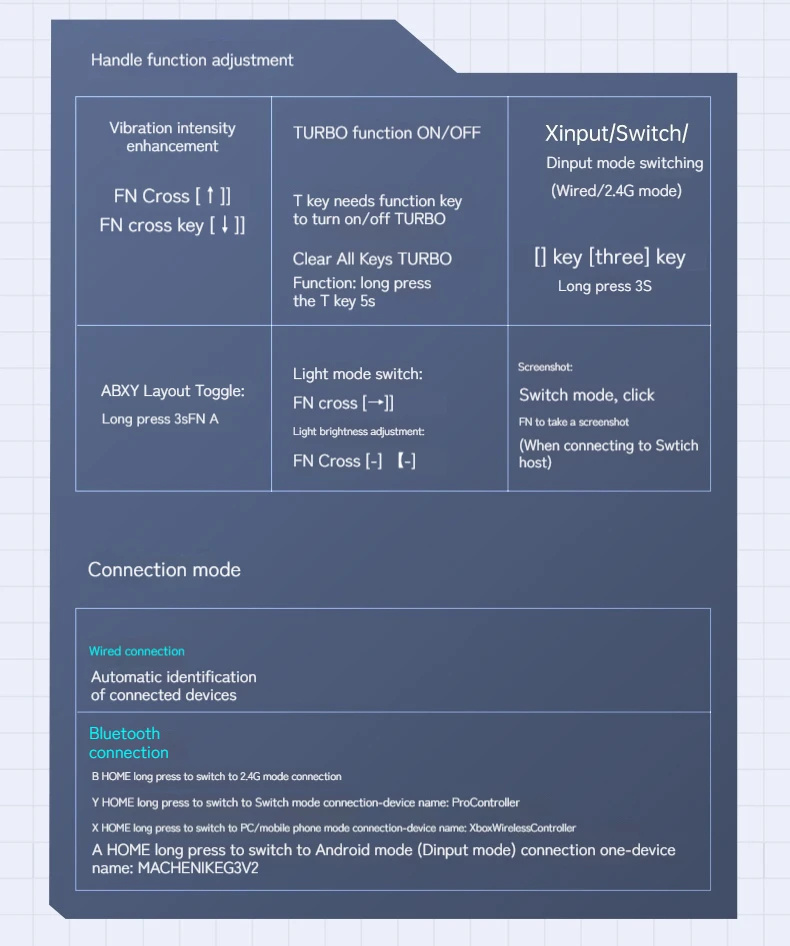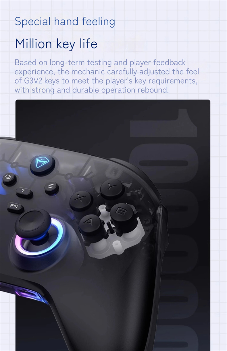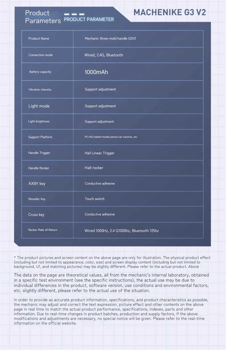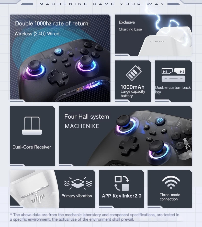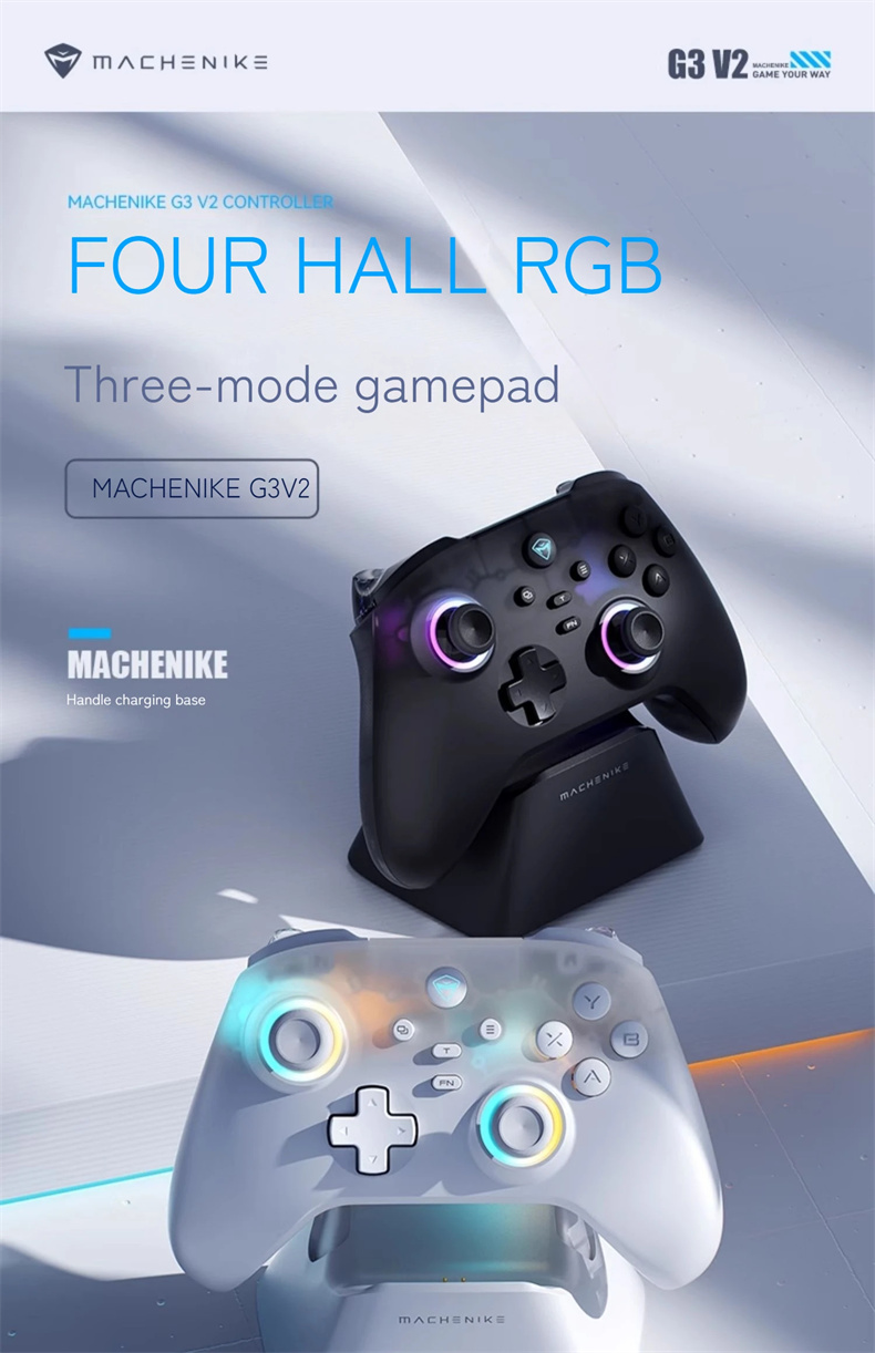 • MACHENIKE G3V2 Tri-mode Game Controller with Four Hall System Hall Effect Joysticks and Triggers RGB Light Real-time Vibration Feedback Dual 1KHz Return Rate Gamepad