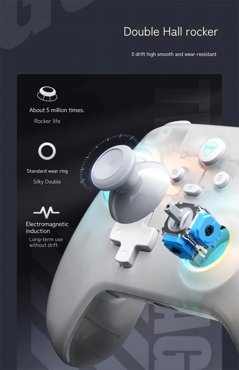 2. Precise Hall Effect Joysticks and Triggers: Experience precision and accurate control with four advanced Hall Effect systems for both joysticks and triggers.