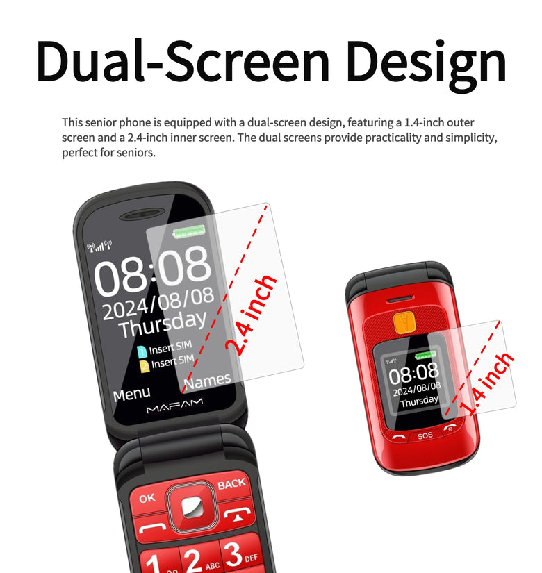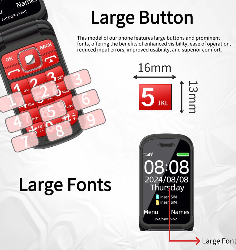 • MAFAM F899 2.4 inch Dual Display 2800mAh FM Vibration SOS Fast Quick Torch Loud Volume Flip Feature Phone