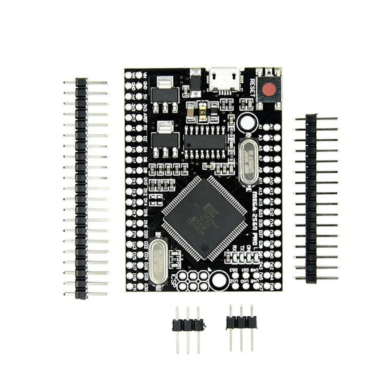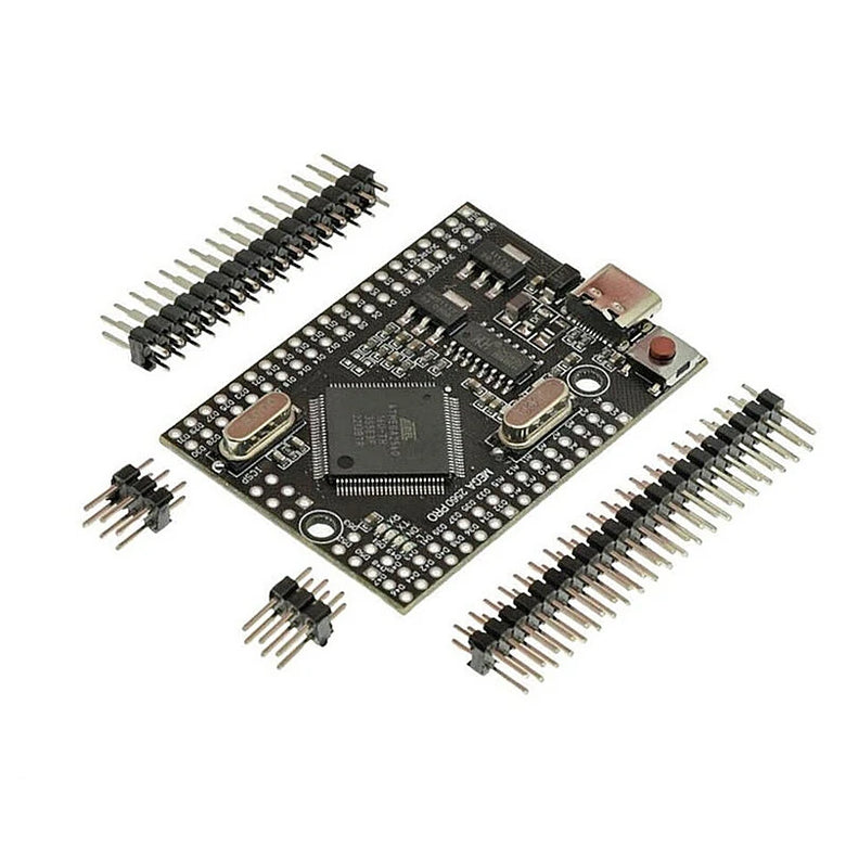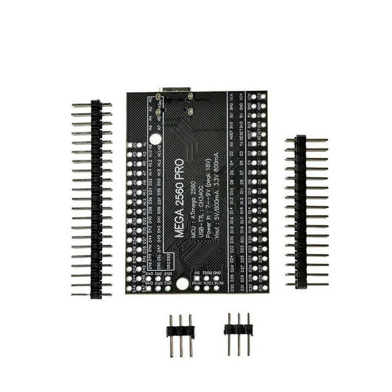 Embed version of Mega 2560 CH340G/ATmega2560 - compatible with Mega 2560 board. Built on the ATmega2560 microcontroller and USB-UART interface chip CH340G.Board have compact size 38x55mm. It is good solution, to make your final project on solder protoboard.Board for functionality similar to the Mega 2560. It is embed board, but the same stable, and uses the original chips ATmega2560 (16 MHz).The board used the chip CH340G as converter UART-USB. When you work in the frequency 12Mhz, giving a stable result of data exchange (need install drivers to computer).Mega PRO (Embed) 2560 CH340G / ATmega2560 - connects to the computer via microUSB cable (used for almost all Android smartphones).You can supply power to board through the MicroUSB connector or to power pinheaders. The voltage regulator (LDO) can deal with incoming voltage from 6V to 9V (peack 18V) DC. Output current for 5V - about 800mA, for 3.3V - about 800mA (Please note that the higher the input voltage the lower the outgoing current). That will provide a reliable power most of your initial projects.