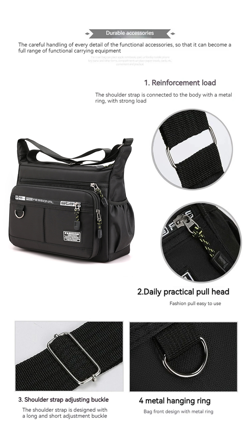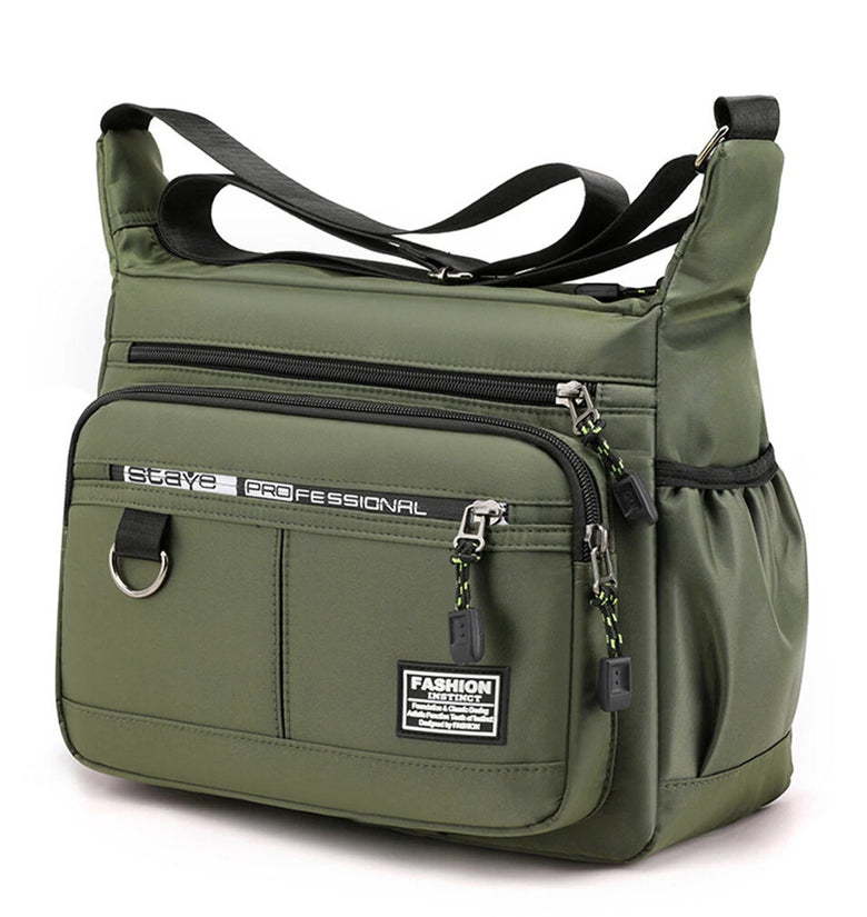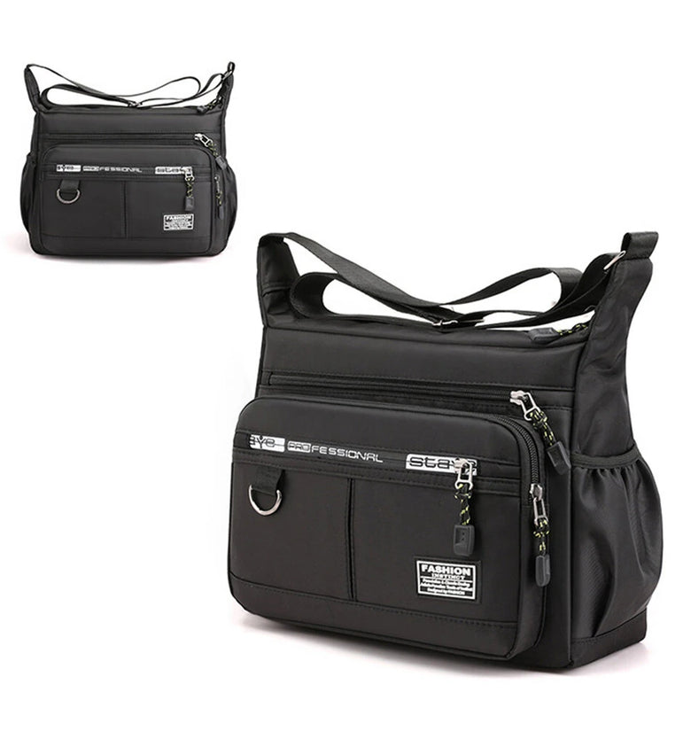 • Men's Large Capacity Business Casual Crossbody Bag Multiple Pockets Soft Lightweight Nylon Fabric Adjustable Strap Messenger Bag