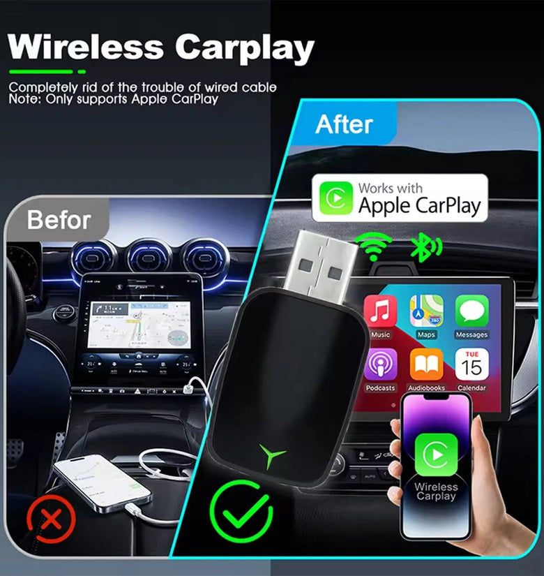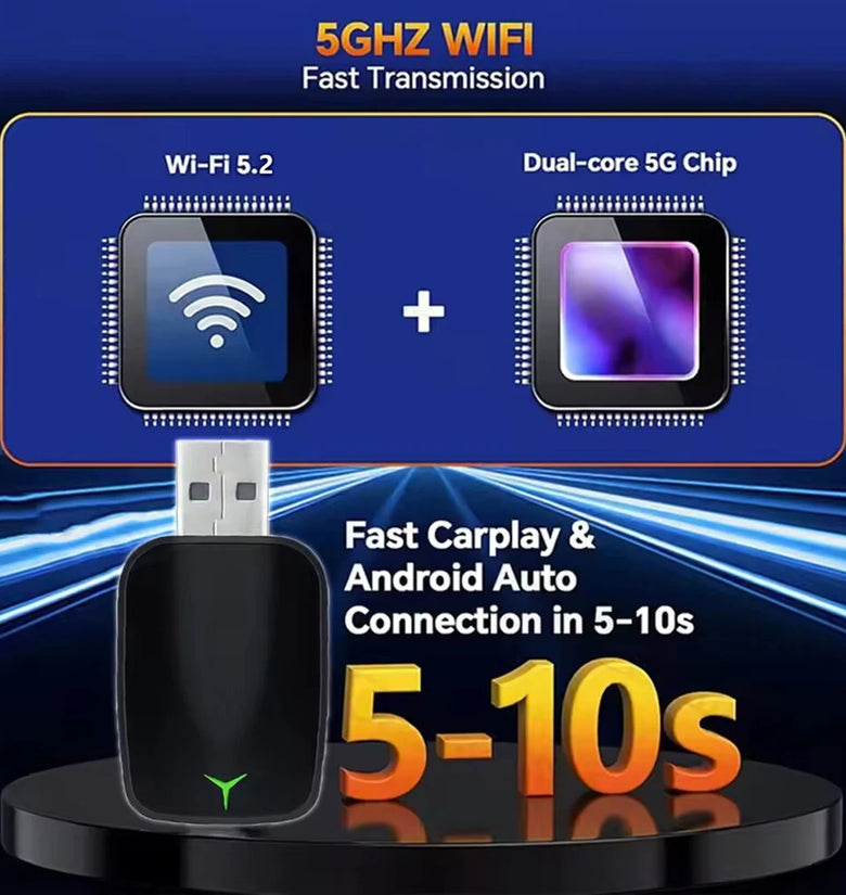 • Mini 2 in 1 Wired to Wireless CarPlay Android Auto Adapter Plug & Play 5GHz WiFi Fast Connection Convert the Original car with Carplay cable to Wireless