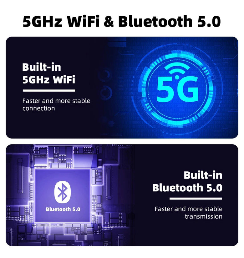 - Advanced 5GHz WiFi Module: Equipped with a certified 5GHz WiFi module that ensures a superior, fast, and smooth wireless experience compared to traditional network speeds, giving you the best performance on the road.