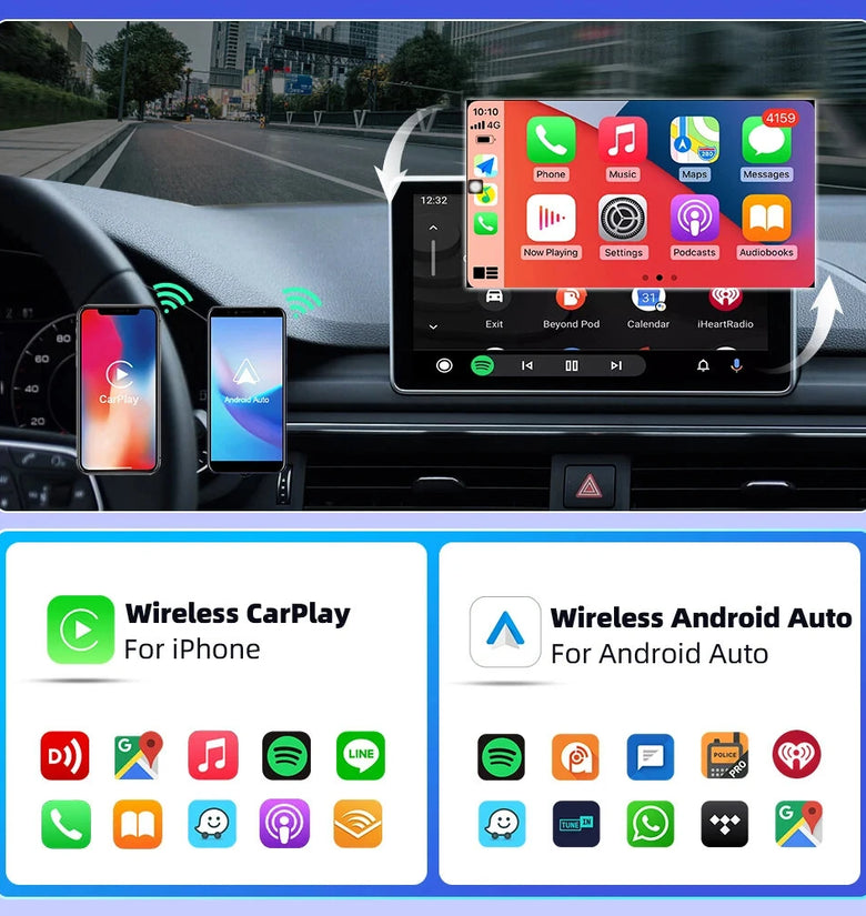 - Broad Compatibility: Supports for iPhone models from for iPhone 6 and above (iOS 10 or above). For Android, it supports Android 11 and above. Note, Huawei devices with EMUI are not compatible with Android Auto Wireless.